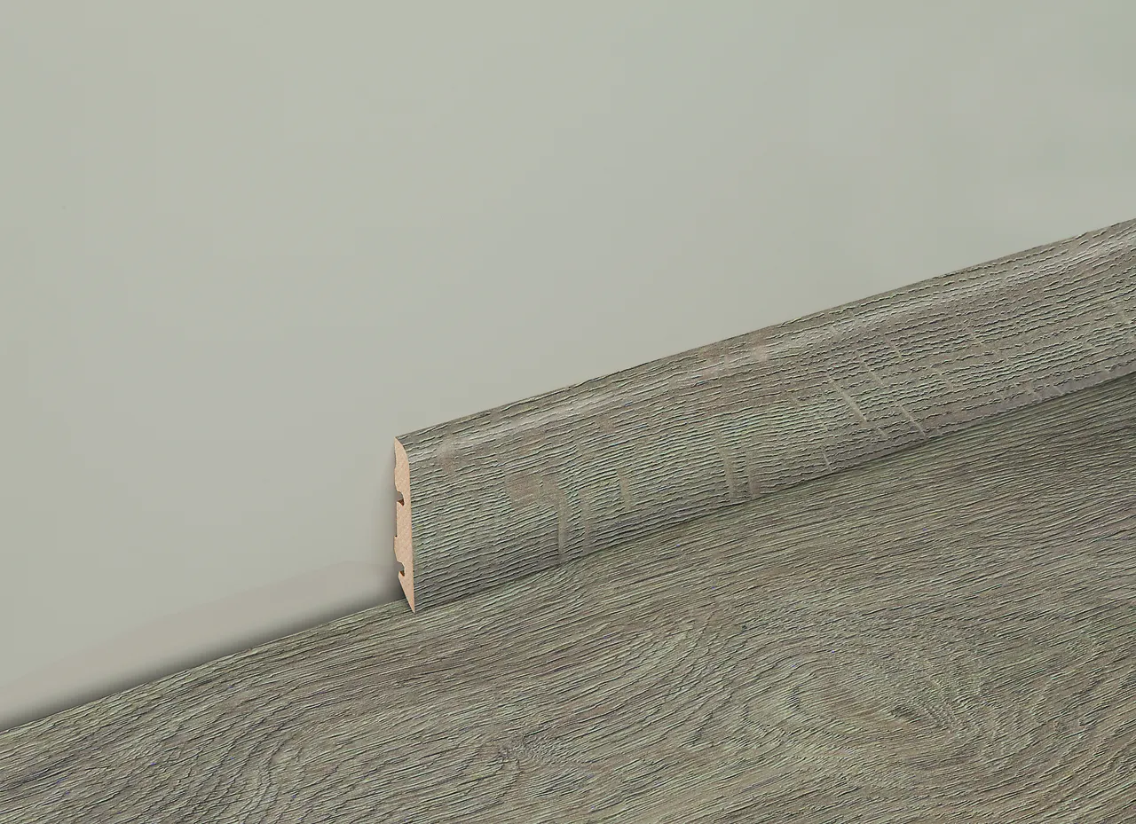 NOBB 45486586 - Artikkelnummer 101145962Sokkellist 14/60 2400 mm eik myk grå