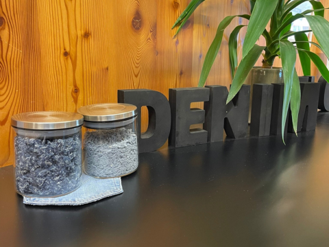 En kilo resirkulerte jeans gir en kvadratmeter jeansgulv