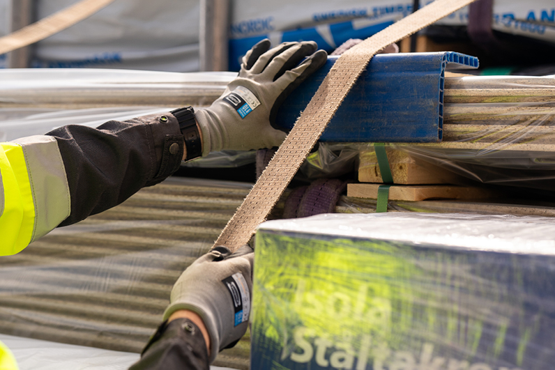 Å være sjåfør av byggevarer er ikke som å kjøre paller fra et lager til et annet. Ingen lass er like. Man har alt fra trelastpakker, platepakker, store skyvedører og lange i-bjelker til små spikerpakker, og sjåførene må kunne organisere lasten på bilen slik at man forhindrer skader.