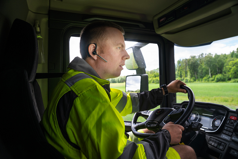 Kristoffer kjører en Scania P370 4X4. Den har kort akselavstand, høy bakkeklaring og god svingradius og egner seg spesielt godt for små byggeplasser hvor de vanlige treakslede bilene ikke kommer fram.