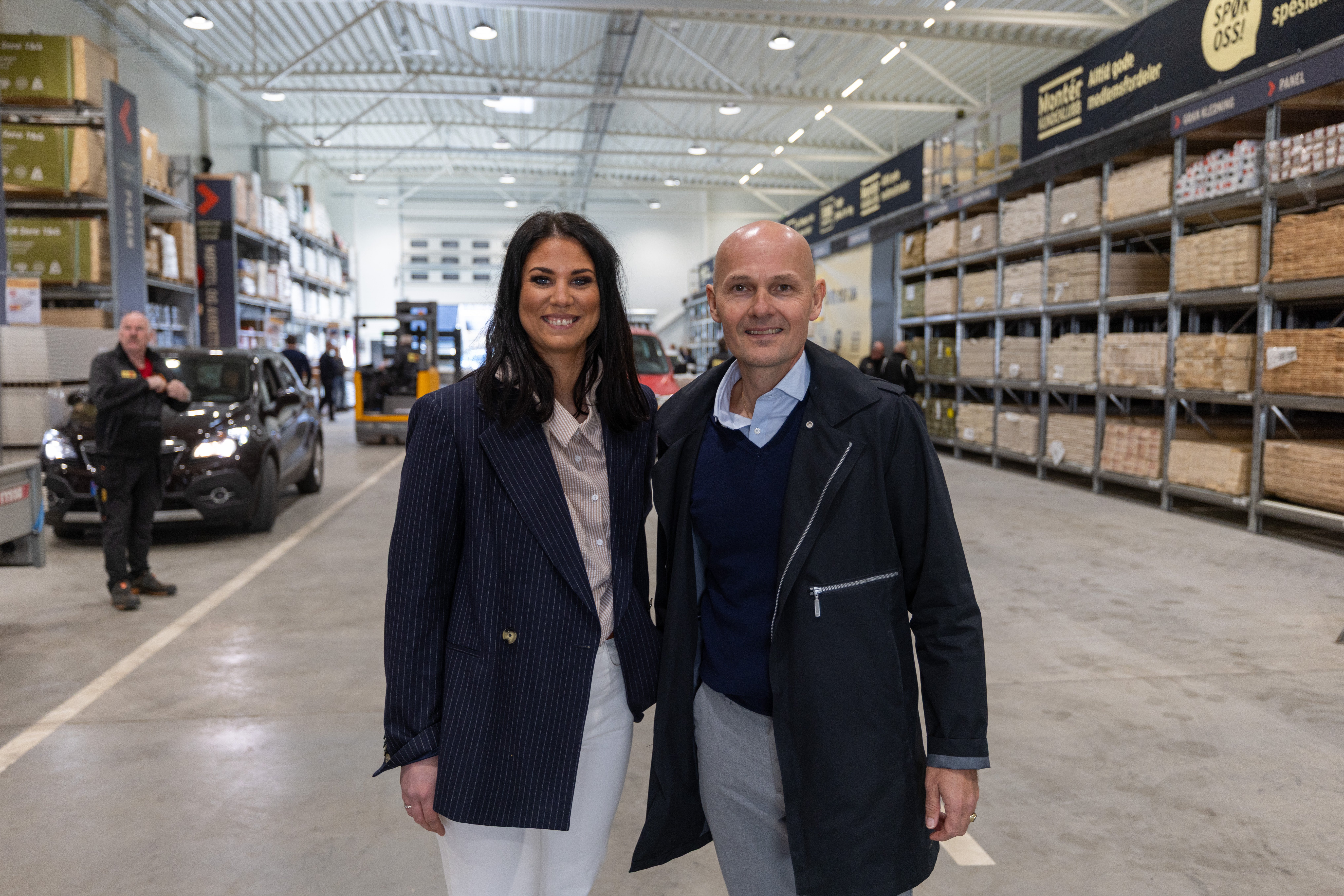 Regionsdirektør Vest, Linn Magnussen Lillefosse og Direktør Montér & Proff, Petter Gram i dne nye utebutikken på åpningsdagen. Foto: Christoffer Rukke
