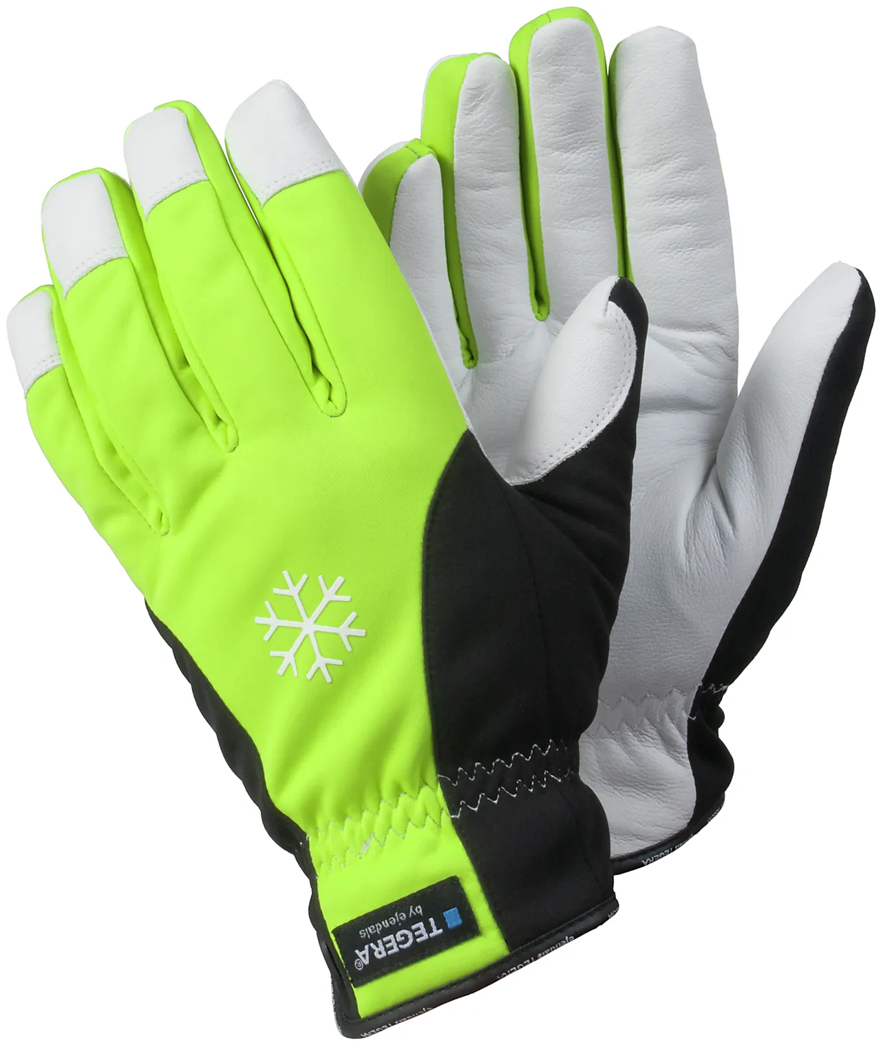 TEGERA 293, Lærhanske, vinterforet, 0,7 0,8 mm geitenarv, polyester, Thinsulate 40g, Cat. II, varselfarge, vind og vanntett håndbak, vanntett, for allroundarbeid