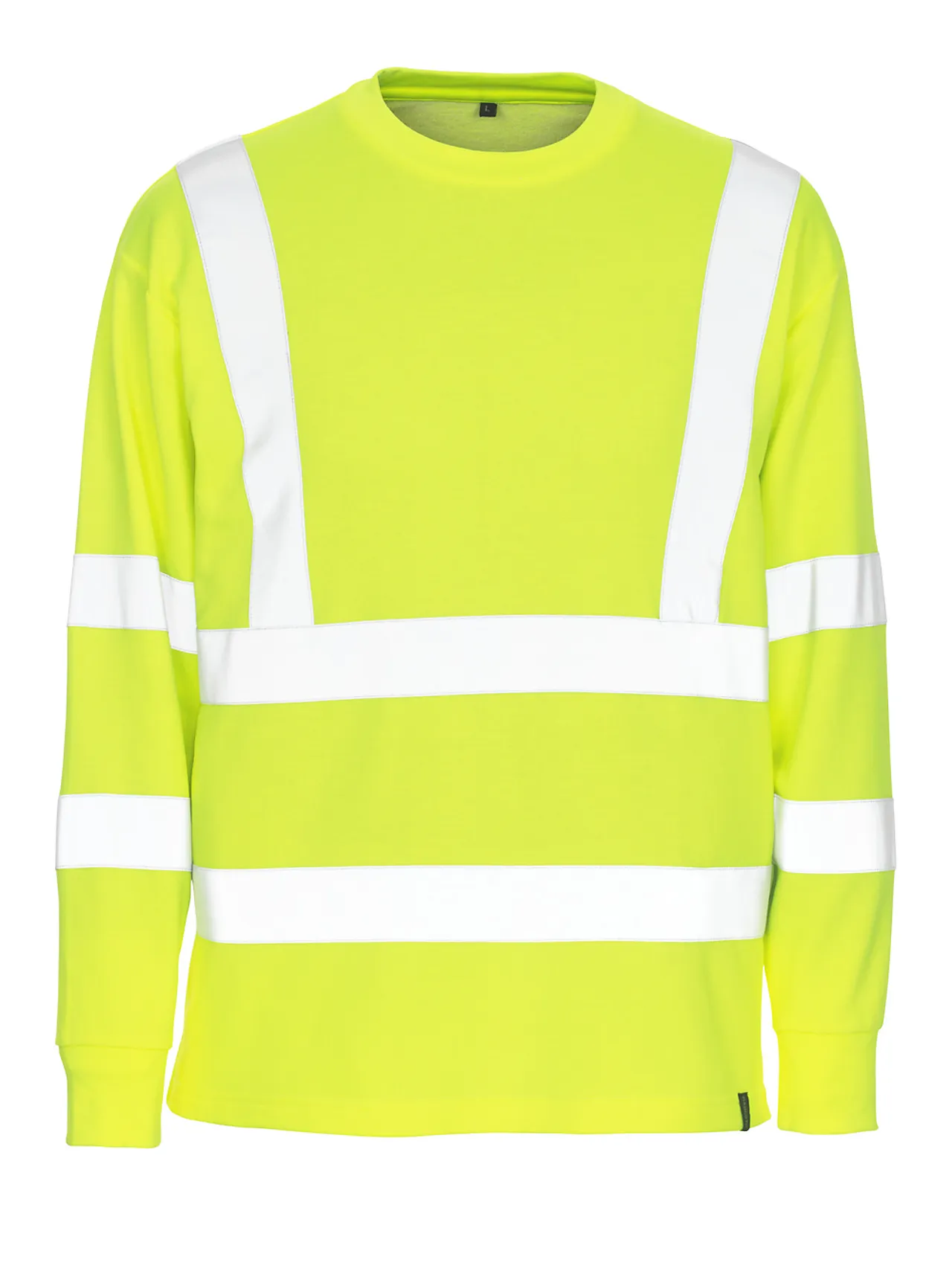 Fluoriserende og med loddrette og vannrette reflekser. Refleksen er elastisk. Rund hals. Ribbestrikk i hals og ved håndledd. Nakkebånd. Splitt i sidene. Rygg er forlenget.