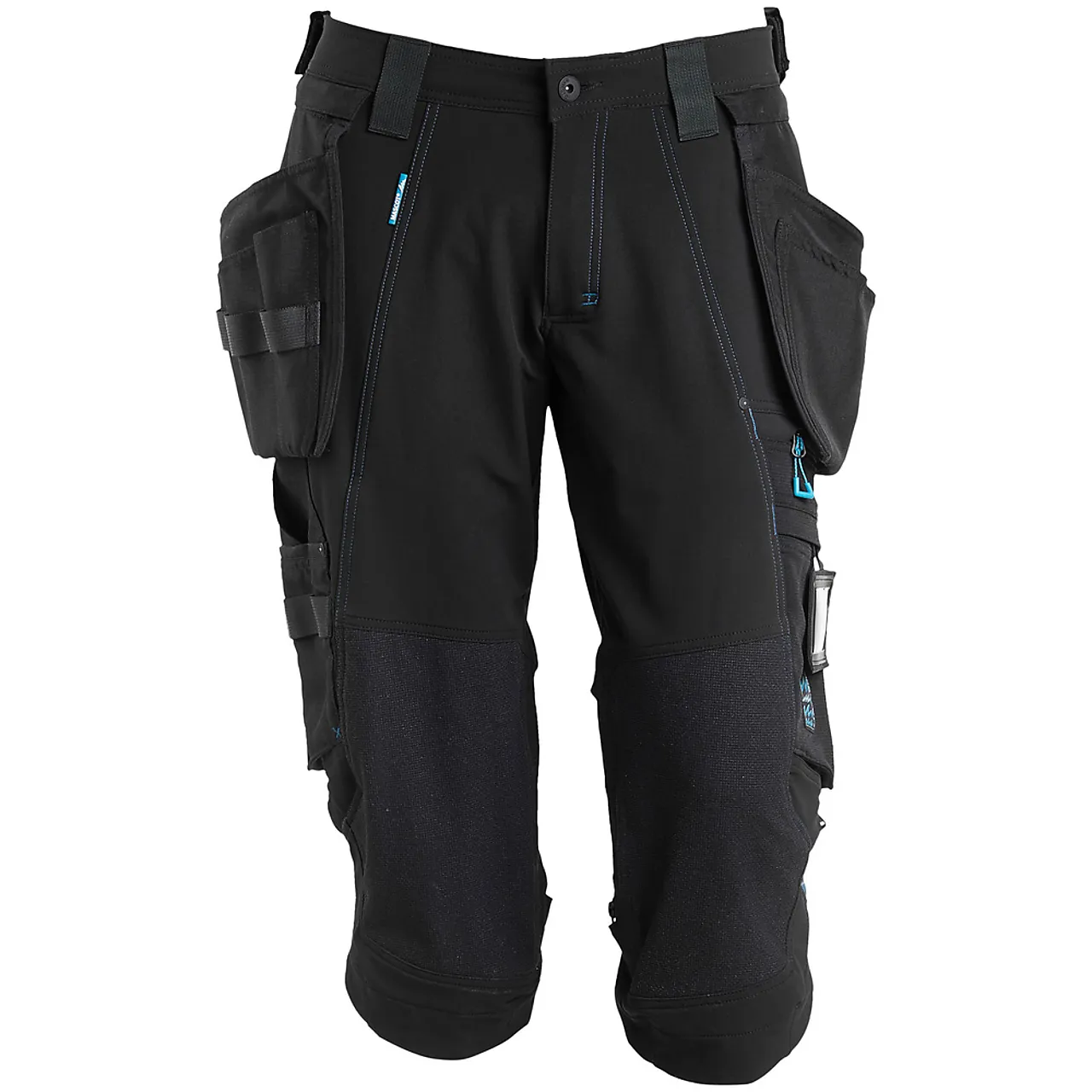 Har en vannavvisende finish. ULTIMATE STRETCH med lav vekt og høy slitestyrke. Man merker nesten ikke stoffet mot huden, siden lommene er integrert i designet. Tonålssømmer på ben og i skritt. Lavt liv. Bukseben er ergonomisk formet. Beltestropper. Gylf med glidelås. Avtakbare hengelommer av slitesterk CORDURA - den fremre delen av høyre hengelomme har stikkmotstandig Kevlar-forsterkning i bunnen. Forlommer. Baklommer. Verktøysstropp i begge sider av linning. Lårlomme med telefonlomme med magnetlukking og integrert ID-kortholder. ID-kortholderen kan tas av. Tommestokklomme i CORDURA med ekstra lommer. Slitesterke og stikkmotstandige kneputelommer av CORDURA/Kevlar/Dyneema har pusteevne og er elastiske. Enkel individuell tilpasning av knepute høyde. Reflekseffekter.
