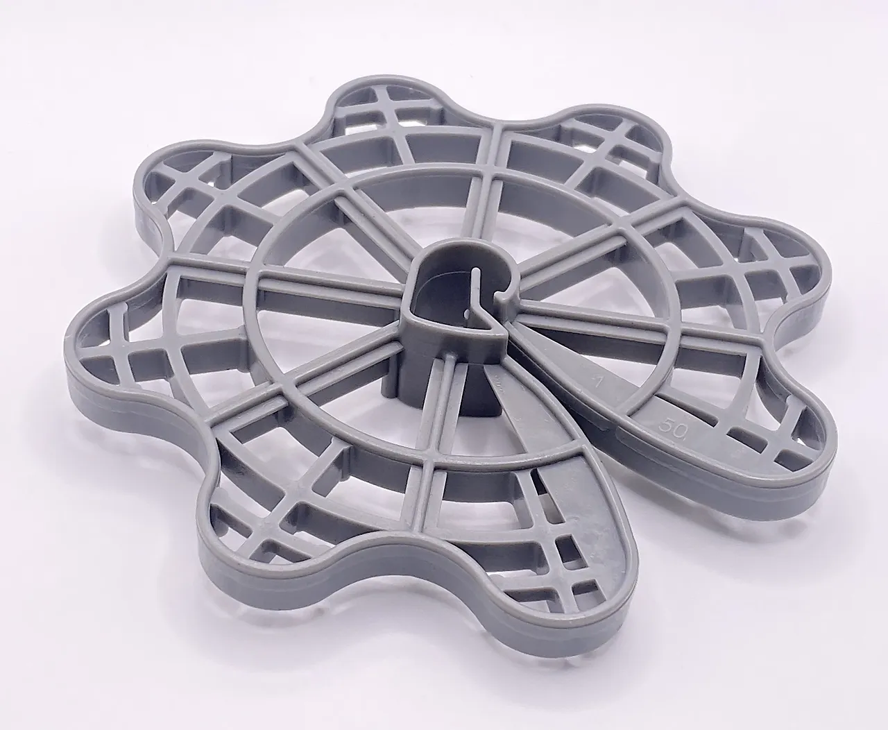 Armeringshjul Mega er laget av slagfast plast, og brukes ved produksjon av søyler og ved dobbelarmert veggproduksjon. Når du fyller et arbeidsområde med betong, er det viktig å sørge for at armeringen ligger riktig montert. Bruk av et slikt armeringshjul sikrer dette, samt at betongens tiltenkte levetid vil da opprettholdes. Hjulet festes på armeringen og roterer på dette når forskalingen heises på plass.