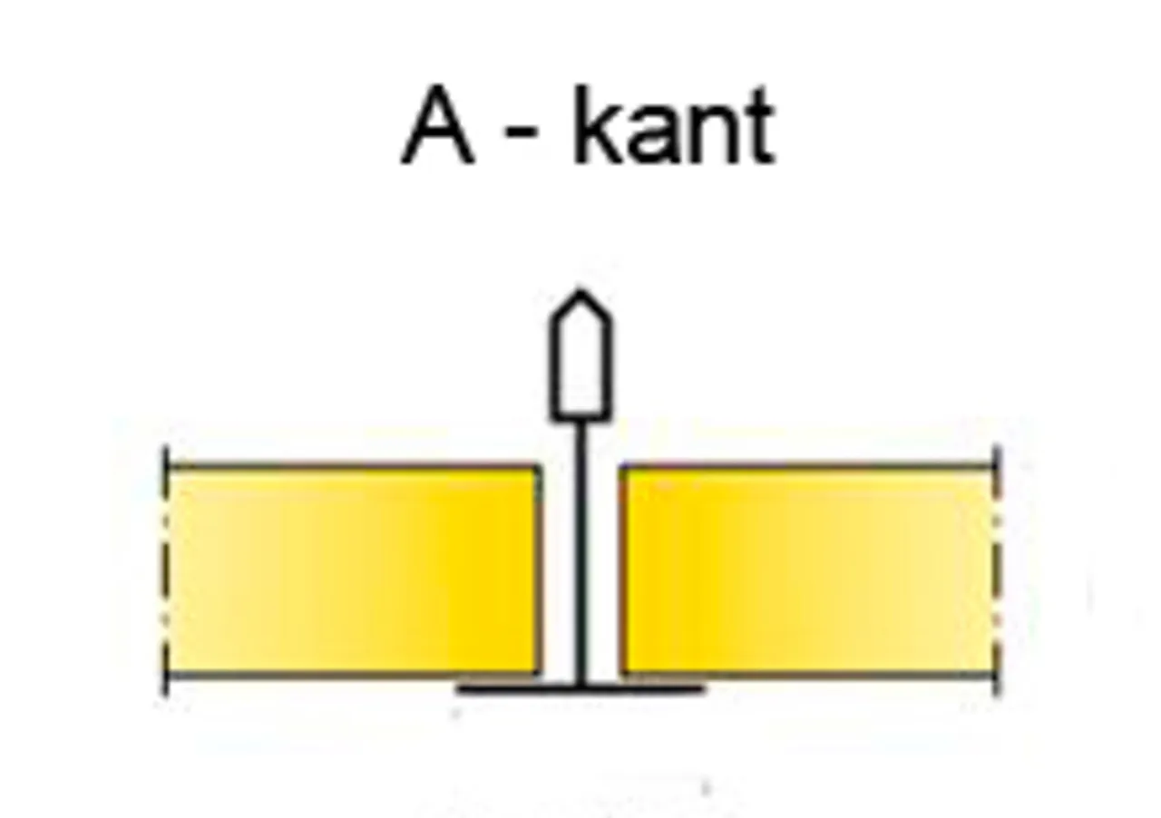 20 mm himlingsplate med malt hvit overflate, Akutex FT. Kan leveres i farger. B-kant limes direkte mot taket. Faset kant gir en 4 mm fuge i skjøten mellom platene.