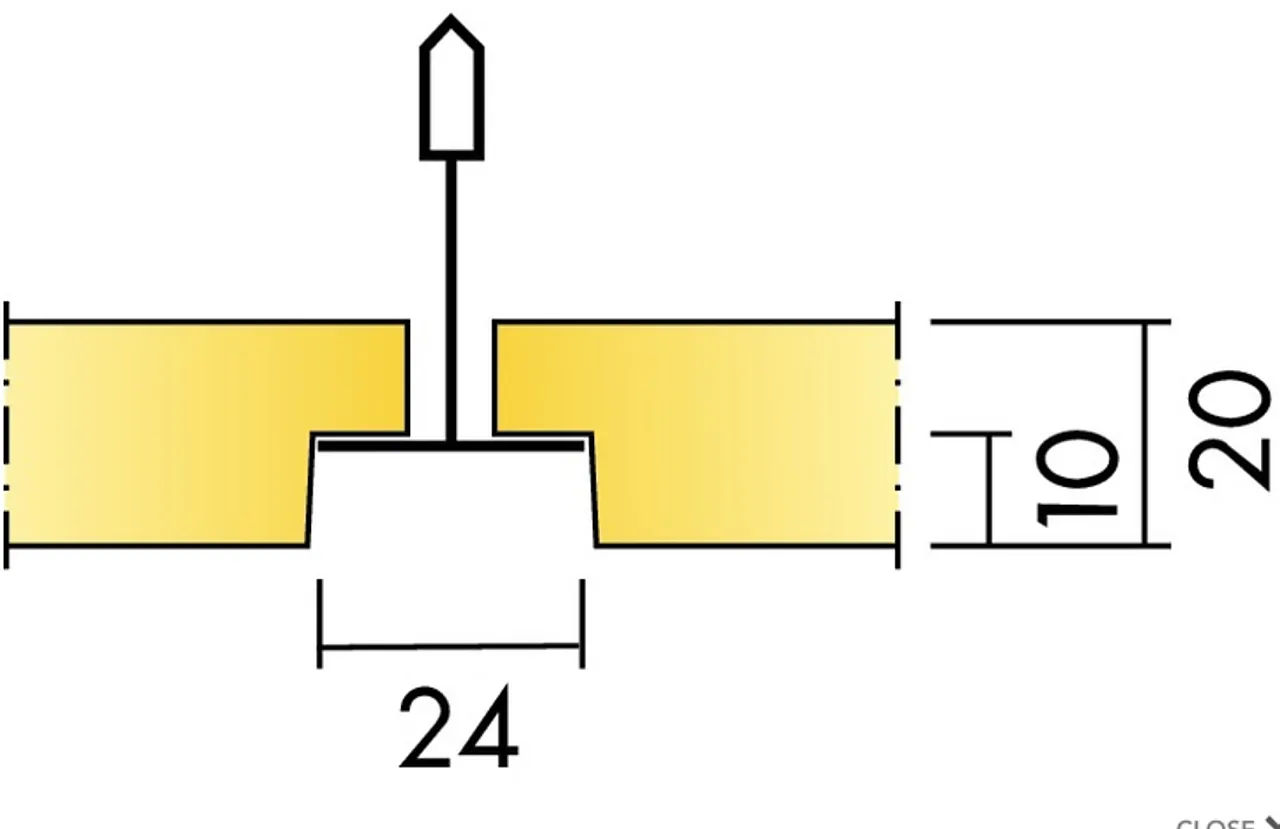 20 mm himlingsplate med malt hvit overflate, Akutex FT. Kan leveres i farger. B-kant limes direkte mot taket. Faset kant gir en 4 mm fuge i skjøten mellom platene.