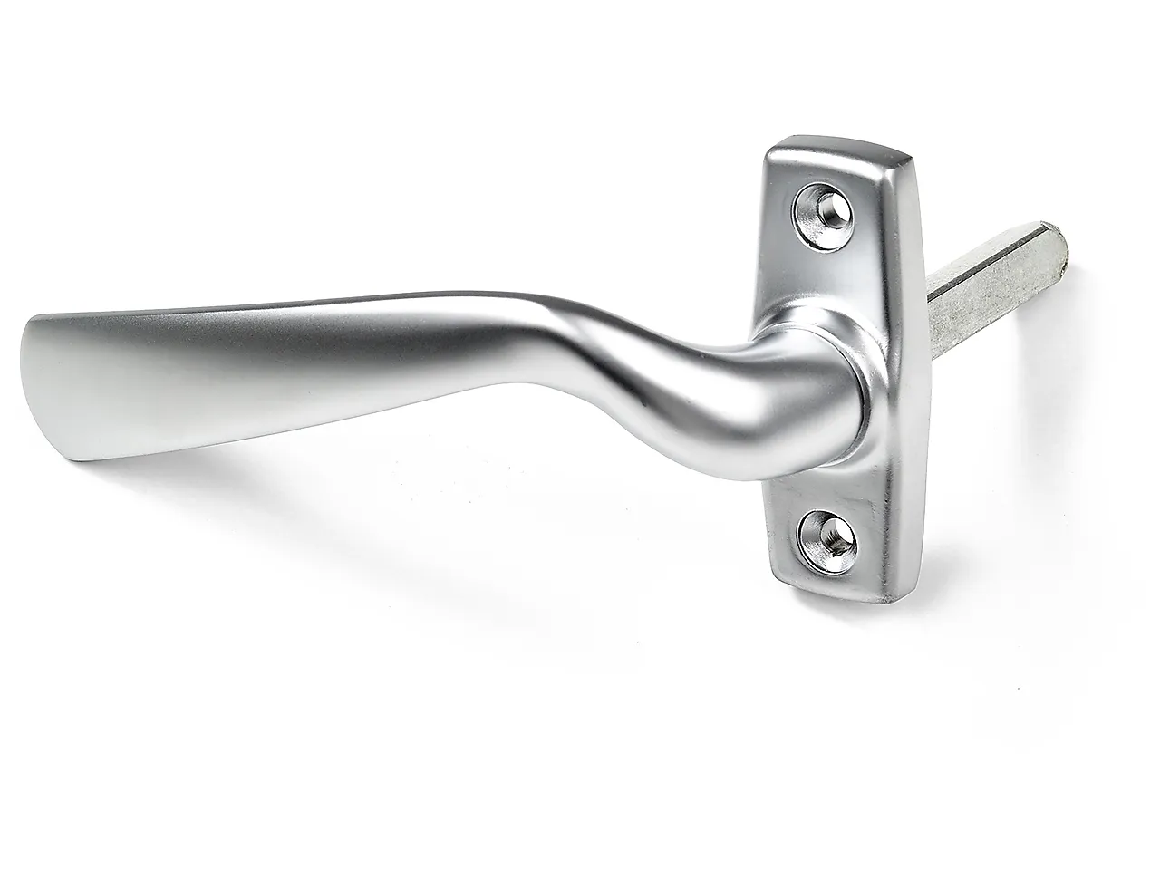Espagnolett dørhåndtak til balkongdør. Det er laget av sink med en matt krom utførelse, og du kan velge mellom venstre og høyre utførelse. Dørhåndtaket leveres med en vriderpinne på 8x53 mm med likelåsende sylinder. Det leveres både med torx skruer og enveisskruer.