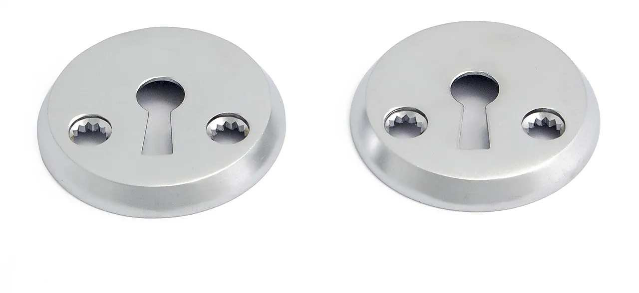 Nøkkelskilt 2991 matt krom sb. Nøkkelskilt av messing. Leveres med skruer for både gjennomgående innfesting og treskruer. Tilpasset dørtykkelse 38-42 mm. Tilpasset låskasse 62014 og 62020.