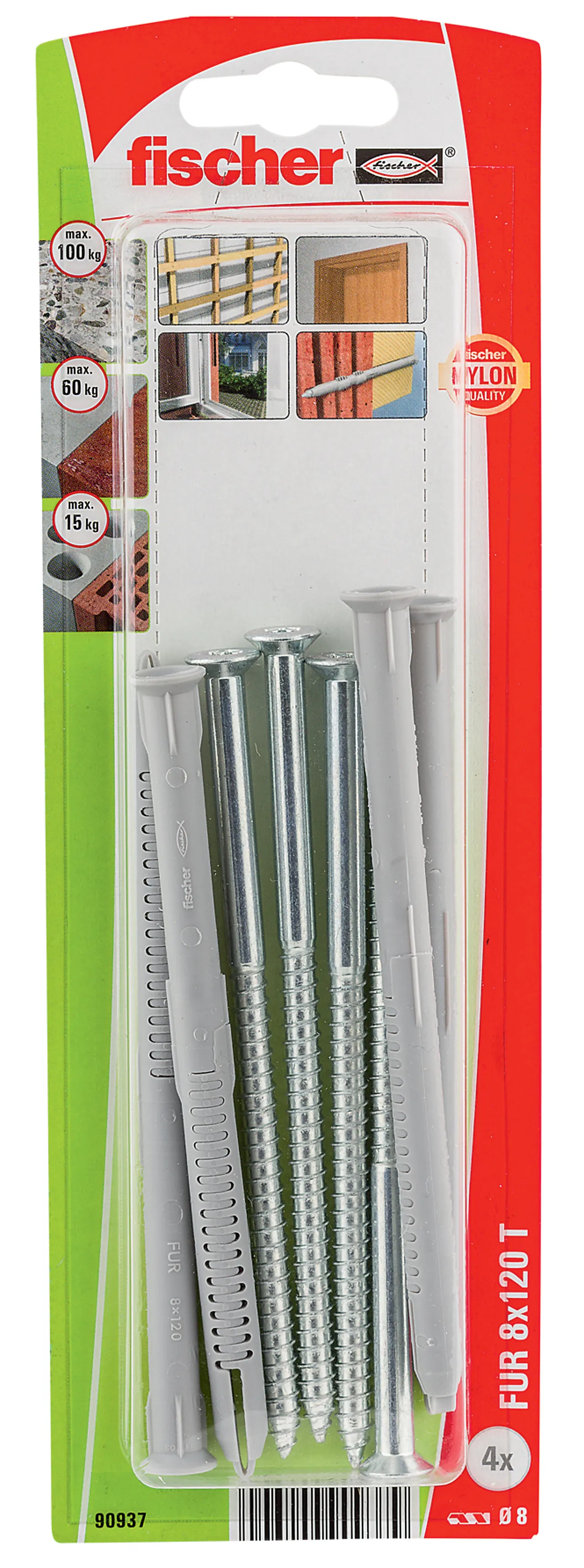 NOBB 40134660 - Artikkelnummer 101137072Fasadeplugg FUR 8x120 mm T 4 stk