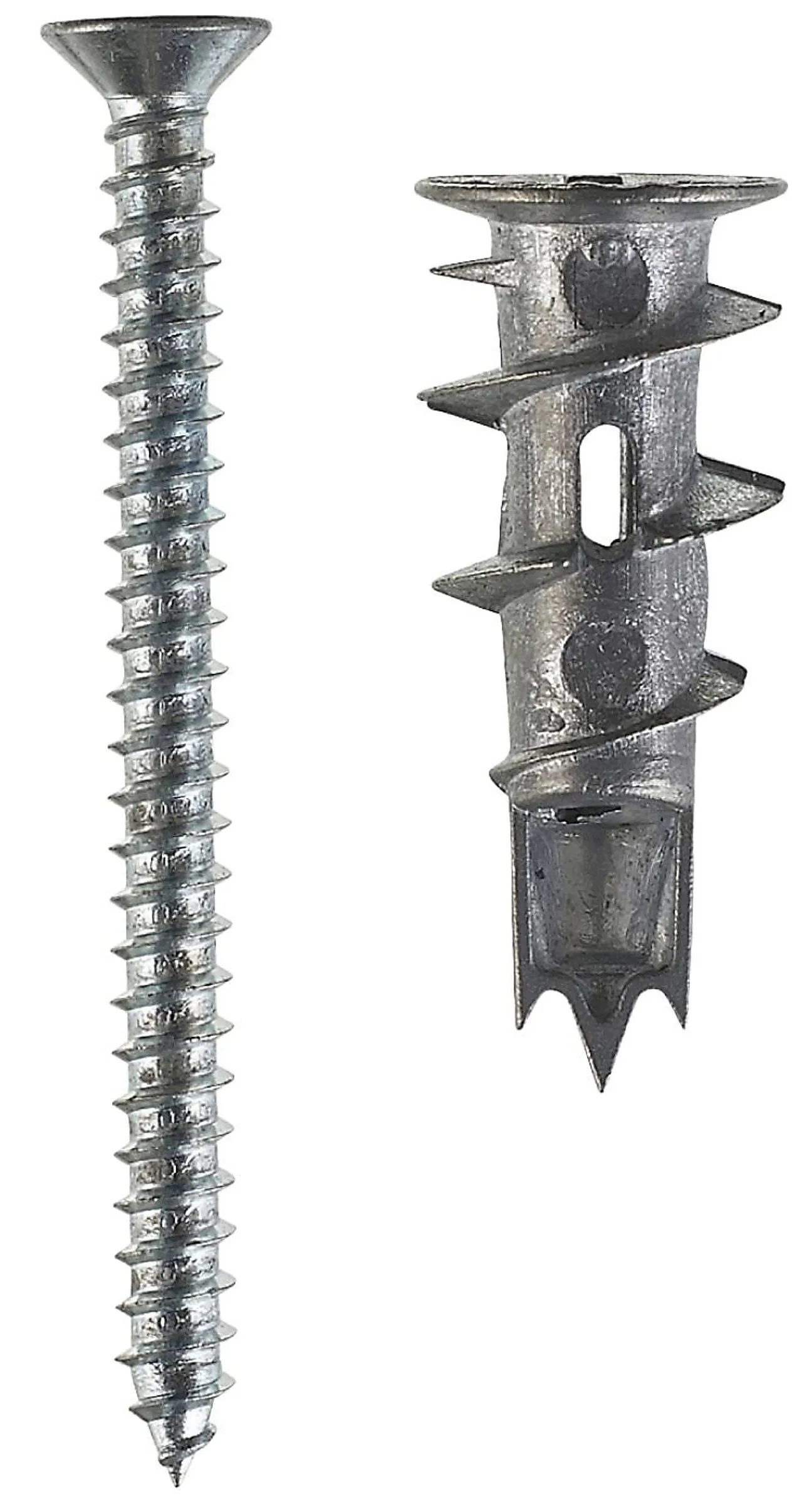 Gipsplugg/anker for rask og sikker montering i gipsplater, samt elementvegger av gips og polyuretan. Pluggen er laget i zink og skruen er elforzinket.