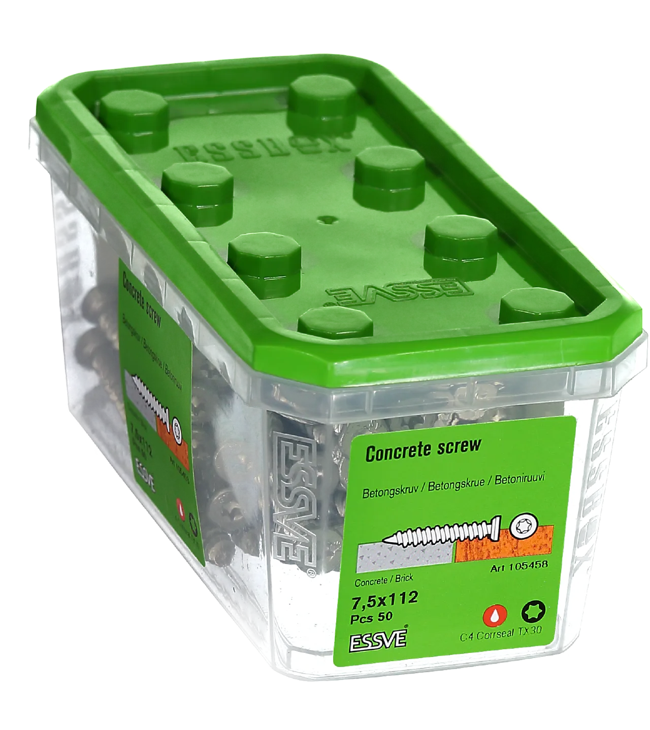 ESSVE Betongskrue er en spesialherdet skrue beregnet for rask og enkel forankring i betong, tegl, hulltegl og hulldekkelement. Betongskruen dras direkte inn i et forboret hull, uten plugg. Skruen er helgjenget med en såkalt "hi-low" gjenge, som forenkler monteringen. Skruen er produsert av herdet stål med blankforsinket eller CorrSeal overflatebehandling.