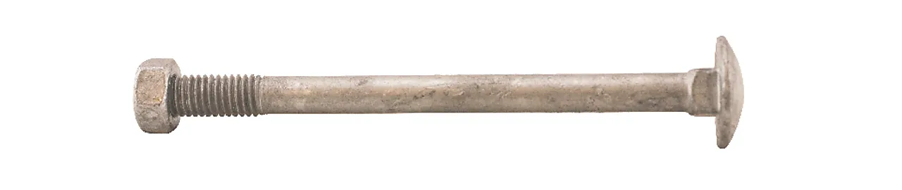Låseskrue med mutter er et pålitelig og holdbart festemiddel som oppfyller DIN603- og DIN934-standardene. Låseskruen og mutteren er laget av herdet karbonstål av kvalitet 4.8, noe som sikrer soliditet og pålitelighet. Både låseskruen og mutteren har gjennomgått en varmforsinket overflatebehandling som gir ekstra beskyttelse mot korrosjon. De har en korrosjonsklasse C3, som betyr at de er motstandsdyktige mot ulike værforhold og miljøer. Skruen er delgjenget, noe som gjør det enkelt å montere og justere dem etter behov.