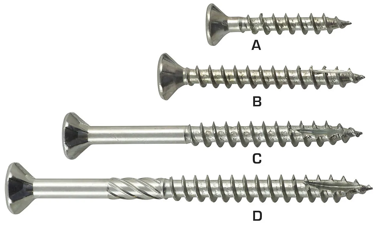 Universal elforsinket treskrue med TX-spor, undersenket hode og freseribber. Friskærer på stamme fra og med 80 mm. High Performance spiss sikrer rask bitt og reduserer risikoen for sprekkdannelse i treverket.
