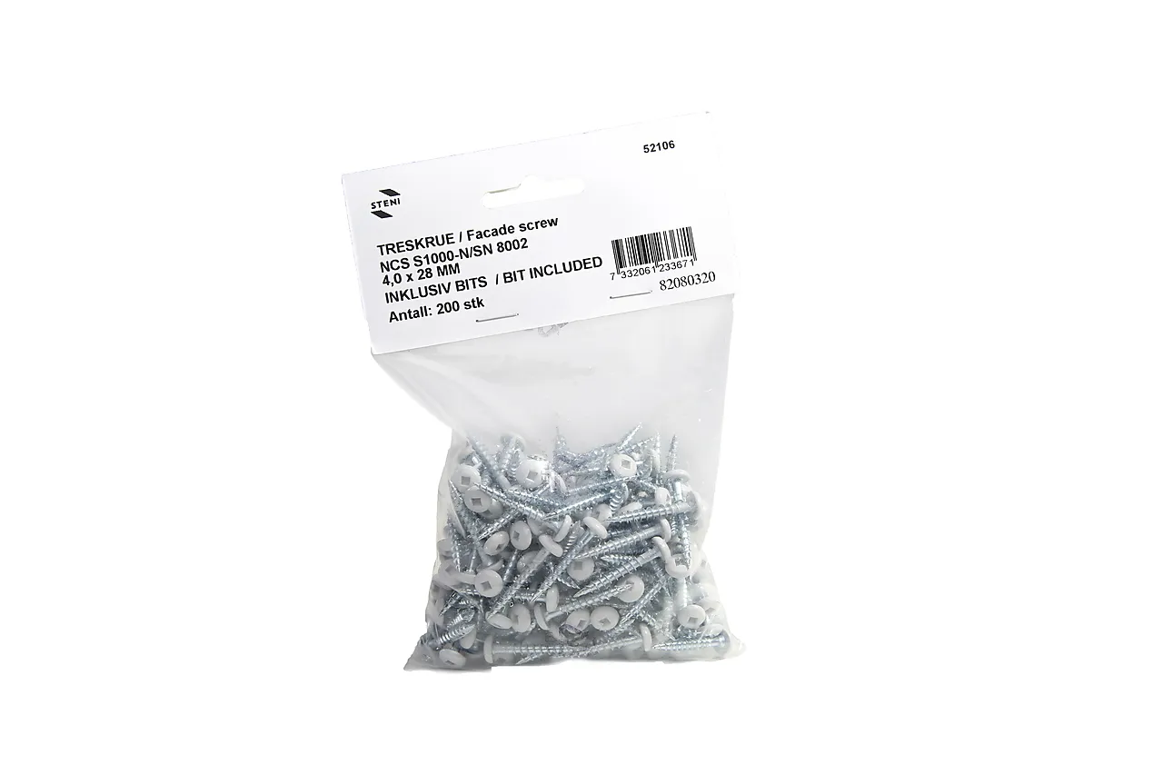 Syrefast skrue for montering av Steni plater på trykkimpregnert trelekter. Sikrer ønsket visuelt utrykk.