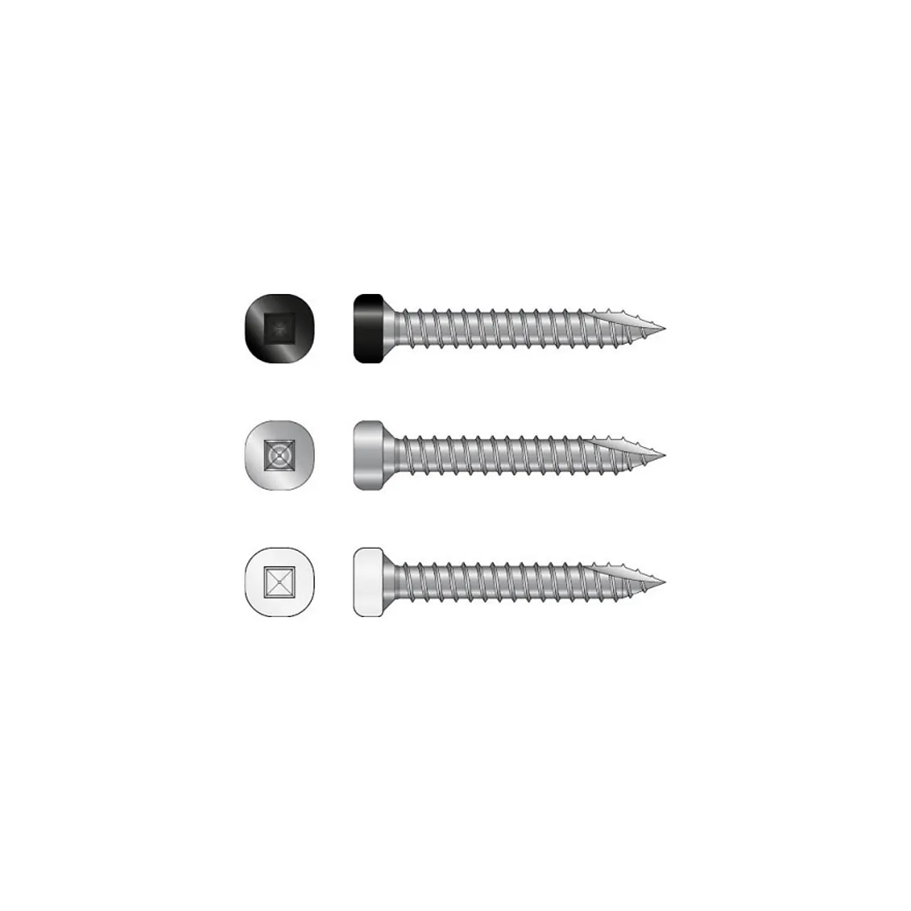 Syrefast skrue for vindusblikk. Undersiden av hodet er utformet slik at det gir en god tetting mot plateunderlaget. Spesialspiss på skruen slik at man unngår sprekkdannelser i treverket.