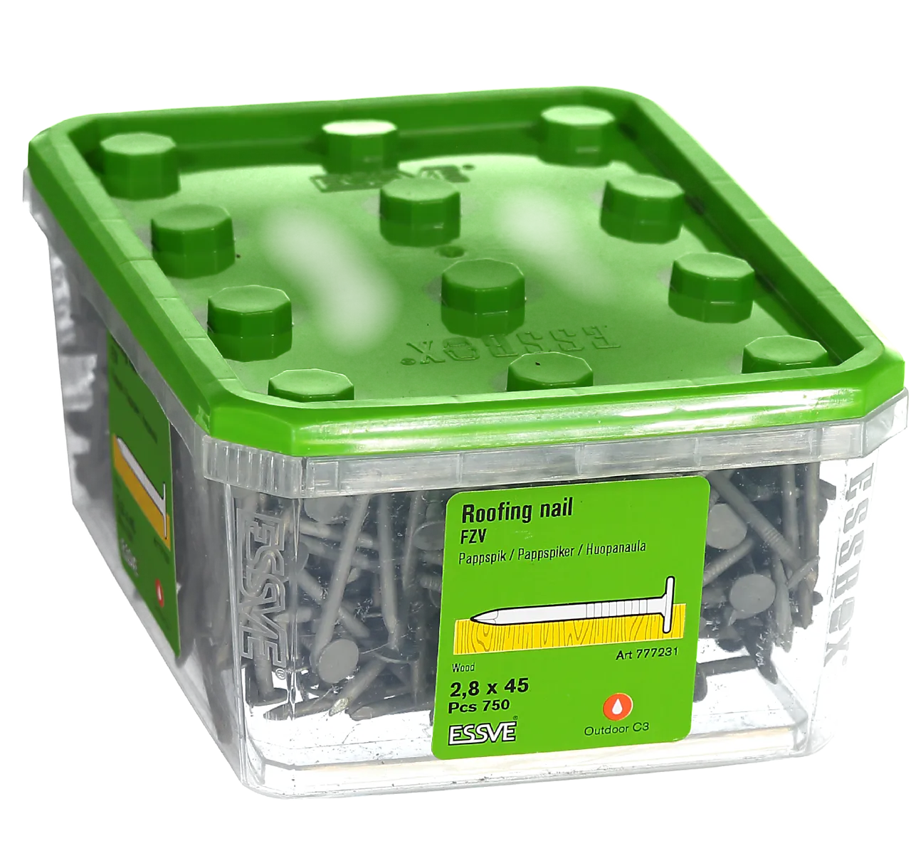 ESSVE Pappspiker er beregnet for takpapp, asfalt vindtett, og andre tynne materialer, utendørs med krav til rustbeskyttelse. Lengre dimensjoner egner seg for spikring av f.eks board og gips.