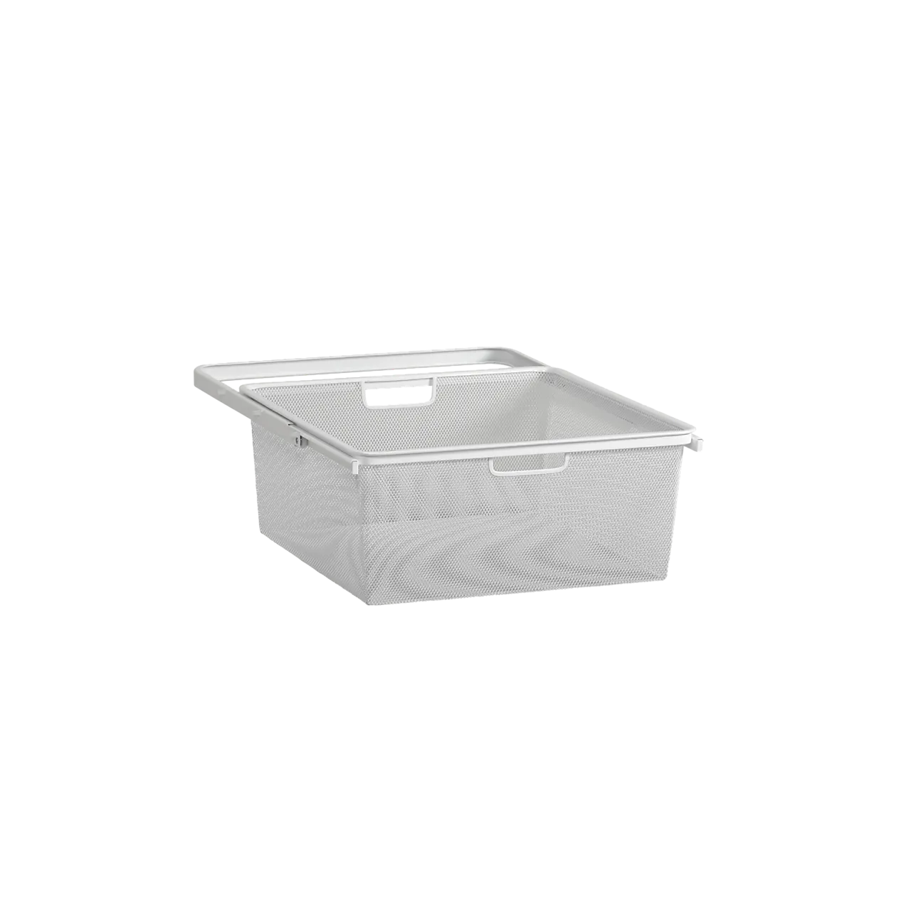 Uttrekkbar meshkurv fra Elfa med komplett ramme. Meshkurven med ramme sørger for at man får et praktisk og funksjonelt garderobesystem som er enkelt å holde ryddig. Hekt kurvrammen på to knekter i systemet, så har du en perfekt oppbevaringsløsning. Kurven kan fås i forskjellige dimensjoner.