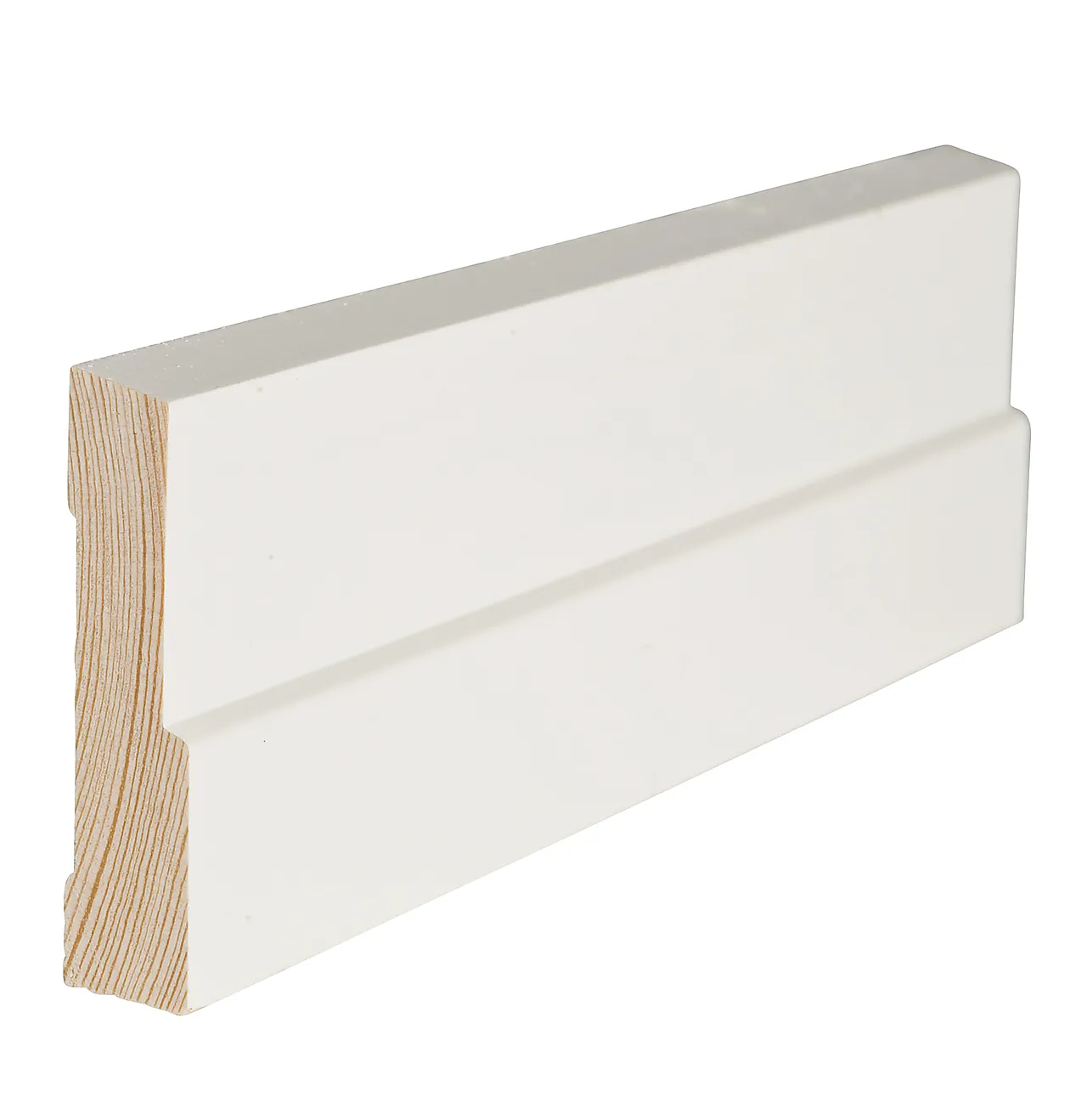 NOBB 40986671 - Artikkelnummer 101138543Gulvlist furu profilert hvit bomull S0502-Y 15x95 mm