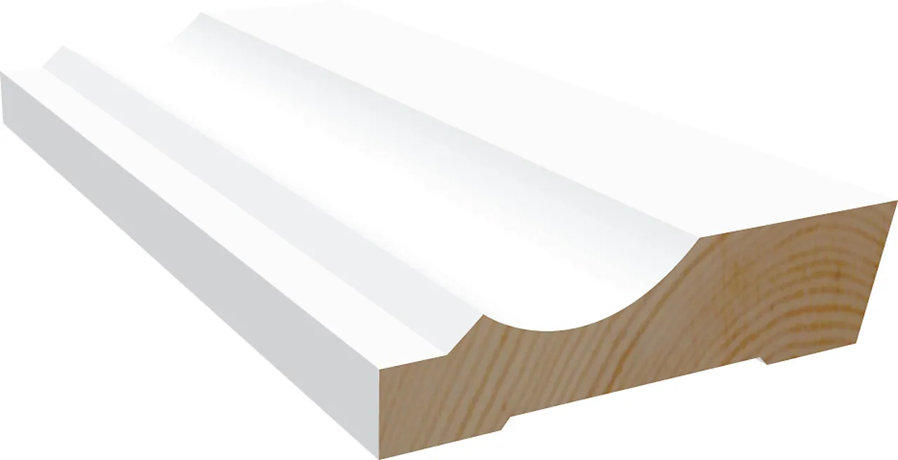 NOBB 41747440 - Artikkelnummer 101126806Gulvlist furu profilert hvit bomull S0502-Y 21x120x4400 mm
