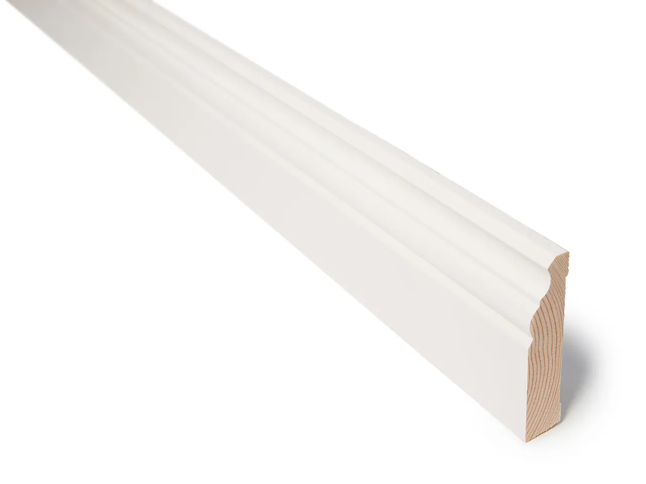 NOBB 40986671 - Artikkelnummer 101138543Gulvlist furu profilert hvit bomull S0502-Y 15x95 mm
