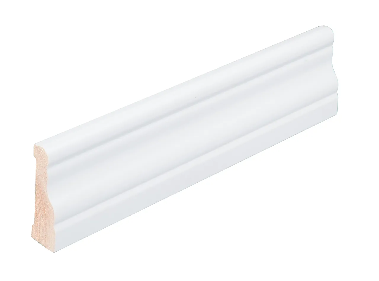 NOBB 51811832 - Artikkelnummer 101244325Gulvlist furu profilert hvit bomull S0502-Y 18x70x4400 mm