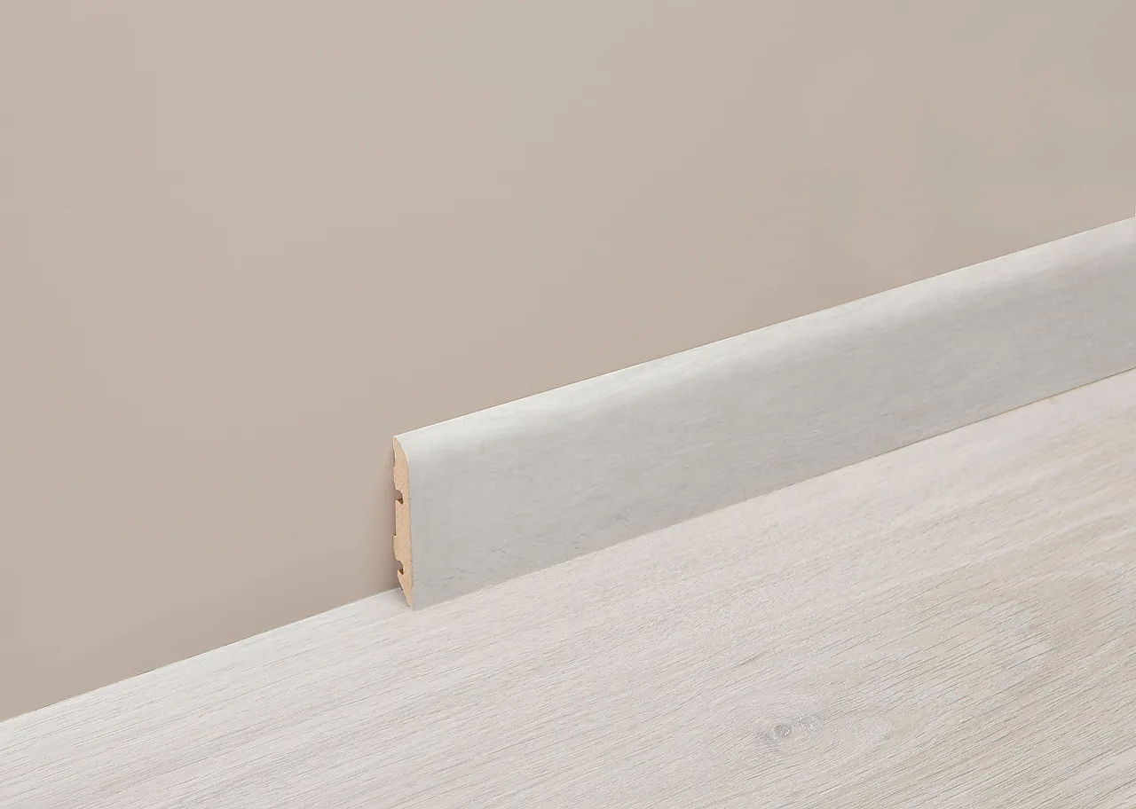 En fargematchende list som gir en sømløs og elegant overgang mellom vegg og gulv. Den bidrar til å dekke mellomrommet på en stilren måte og skaper et helhetlig preg i rommet. Listen er designet for å matche BerryAlloc-gulv i samme dekor, noe som fremhever gulvet og får rommet til å virke større. Monteringen er enkel og kan gjøres med enten lim eller clips, slik at du får et varig og pent resultat.