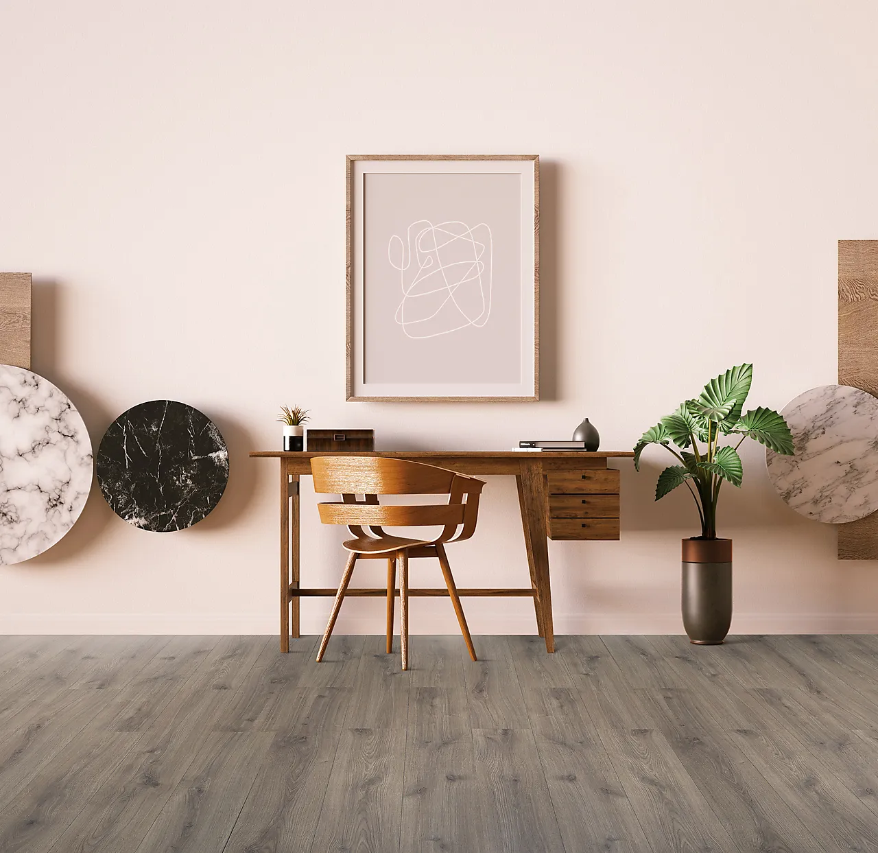 Laminatgulv med et unikt låsesystem som kobler gulvbordene enkelt sammen, uten bruk av lim. Rolig og naturlig design uten fuger eller kvister, med en myk grå/bruntone. Overflaten er matt og komfortabel, og gir deg den samme følelsen som oljet parkett. Designet formidler den naturlige og enkle skjønnheten ved treet. Klikklåssystemet i aluminium gjør monteringen rask og enkel. 1-stavs-plankene kommer med Silent System som er et lyddempende underlag. Plankene har en impregnert, vannresistent HDF-kjerne som reduserer fuktgjennomtrengning. Gulvet innehar den høyeste klassifiseringen (klasse 34), hvilket gjør at det passer til alle offentlige og private rom, med unntak av våtrom. Laminatgulvet er slitesterkt og krever minimalt med vedlikehold. En pakke inneholder 8 bord og 1,9119 m2. Tykkelse 11 mm. Produktet kan leveres Ferdig Montert, som du kan lese mer om her