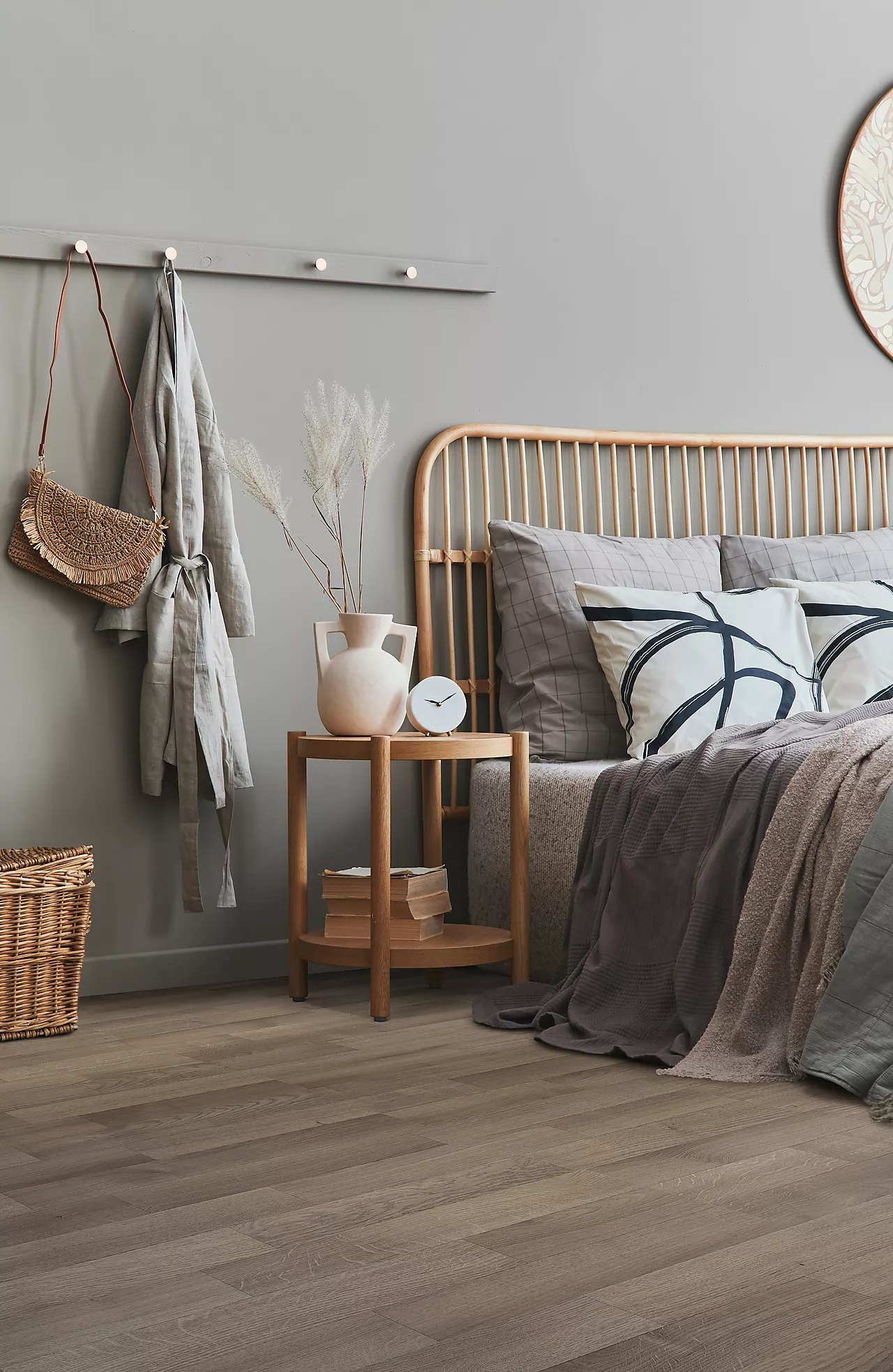 Laminatgulv med et unikt låsesystem som kobler gulvbordene enkelt sammen, uten bruk av lim. Rolig og naturlig design uten fuger eller kvister, med en myk grå/bruntone. Overflaten er matt og komfortabel, og gir deg den samme følelsen som oljet parkett. Designet formidler den naturlige og enkle skjønnheten ved treet. Klikklåssystemet i aluminium gjør monteringen rask og enkel. 1-stavs-plankene kommer med Silent System som er et lyddempende underlag. Plankene har en impregnert, vannresistent HDF-kjerne som reduserer fuktgjennomtrengning. Gulvet innehar den høyeste klassifiseringen (klasse 34), hvilket gjør at det passer til alle offentlige og private rom, med unntak av våtrom. Laminatgulvet er slitesterkt og krever minimalt med vedlikehold. En pakke inneholder 8 bord og 1,9119 m2. Tykkelse 11 mm. Produktet kan leveres Ferdig Montert, som du kan lese mer om her
