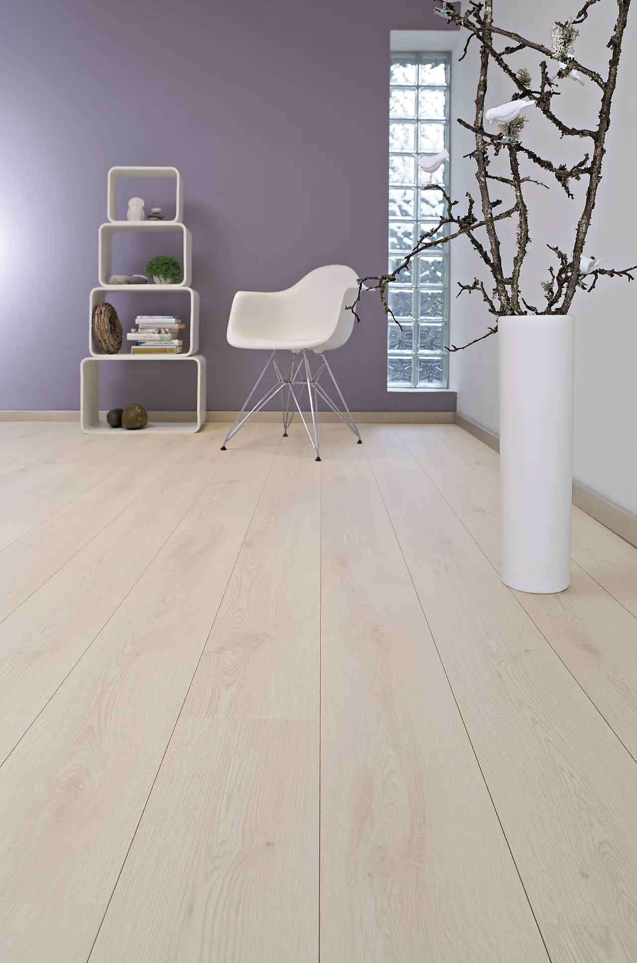 Laminatgulv med et unikt låsesystem som kobler gulvbordene enkelt sammen, uten bruk av lim. Rolig og naturlig design uten fuger eller kvister, med en myk grå/bruntone. Overflaten er matt og komfortabel, og gir deg den samme følelsen som oljet parkett. Designet formidler den naturlige og enkle skjønnheten ved treet. Klikklåssystemet i aluminium gjør monteringen rask og enkel. 1-stavs-plankene kommer med Silent System som er et lyddempende underlag. Plankene har en impregnert, vannresistent HDF-kjerne som reduserer fuktgjennomtrengning. Gulvet innehar den høyeste klassifiseringen (klasse 34), hvilket gjør at det passer til alle offentlige og private rom, med unntak av våtrom. Laminatgulvet er slitesterkt og krever minimalt med vedlikehold. En pakke inneholder 8 bord og 1,9119 m2. Tykkelse 11 mm. Produktet kan leveres Ferdig Montert, som du kan lese mer om her