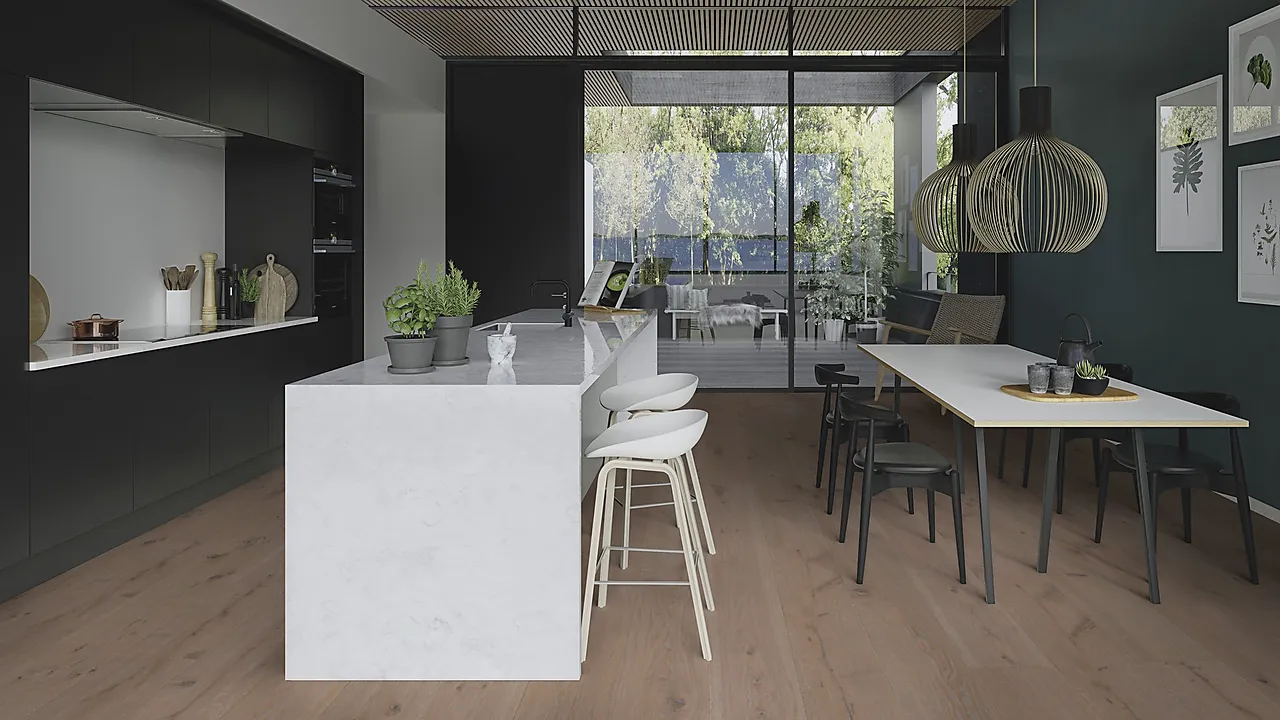 Parkettgulv med naturlig utseende, velg mellom ulike farger og staver. Gulvet er lunt og godt å gå på og live-pure lakken gir et ubehandlet og ultramatt finish. Overflaten på gulvet er enkel å holde rent og motstandsdyktig mot flekker, søl og sollys. 5G klikk system gjør gulvet enkelt å legge. Kan fint kombineres med gulvvarme. Produktet kan leveres Ferdig Montert, som du kan lese mer om her