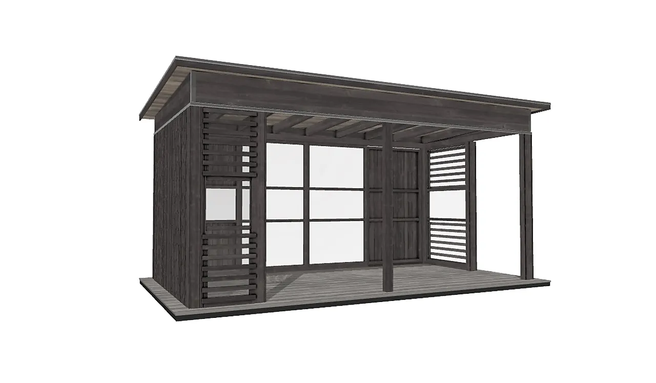 Hagestue 1805 er en åpen, enkel og romslig hagestue for herlige dager og kvelder under tak. Med sine 13,5 kvm. er det god plass til møblering. Hva med en utepeis i utestuen, for litt ekstra stemning eller de kaldere høstkveldene? Totalmål: 266 x 506 cm – 13,5 M².