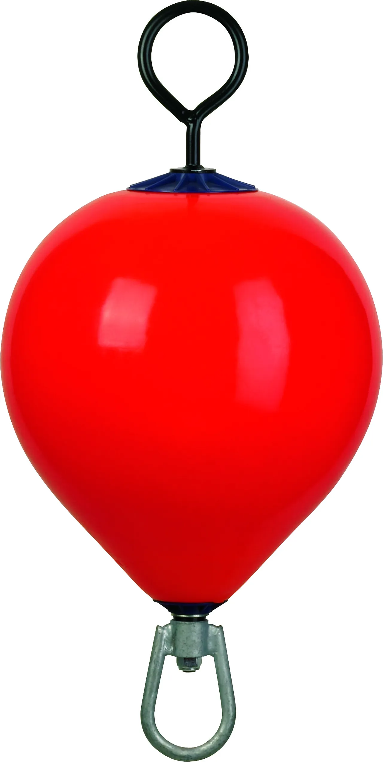 Fortøyningsbøye av høy kvalitet med gjennomgående galvanisert jern. Diameter 480 mm. Lengde 500 mm (uten senterbolt/stang). Senterbolt med ring har diameter 16 mm.