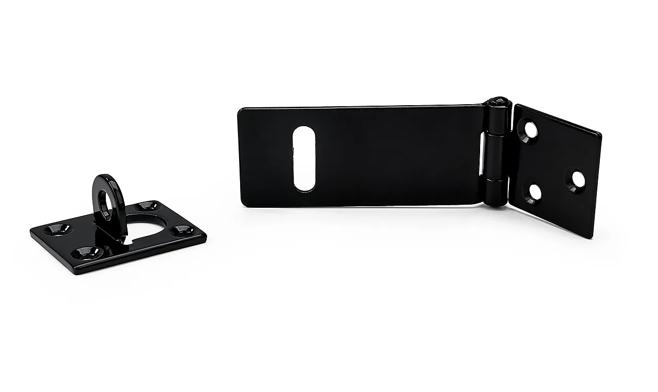 Haspe av stål for enkel låsing i kombinasjon med hengelås. Den består av en vertikal ring for hengelås med maksimalt 9 mm bøyle, og passer utmerket til bod, uthus, skjul osv. Når hengelåsen låser fast haspen kan du være trygg på at døren holdes stengt. Hengelås selges separat.
