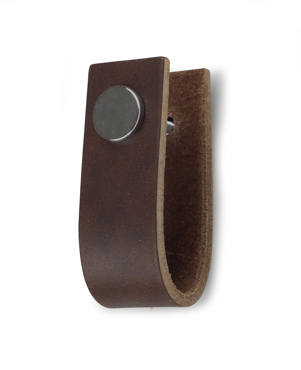 Møbelhåndtak svea skinn brun sb. Møbelhåndtak i brunt lær til skuffer og skapdører. Passer perfekt til skap og skuffer på kjøkkeninnredning og til kommoder og klesskap.