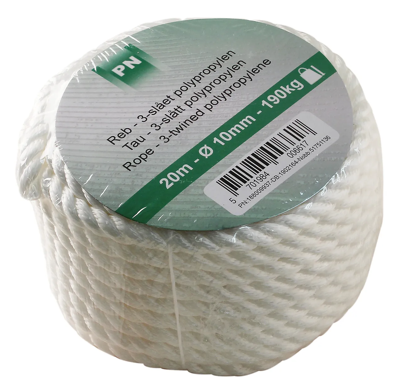 NOBB 51751121 - Artikkelnummer 101216181Tau 3-slått ø 10x20 m polypropylen