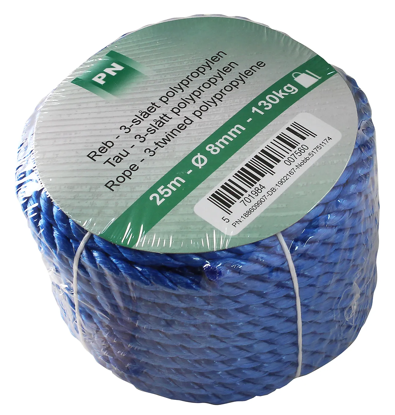 • Tau flettet ø 8 mm x 25 m polypropylen