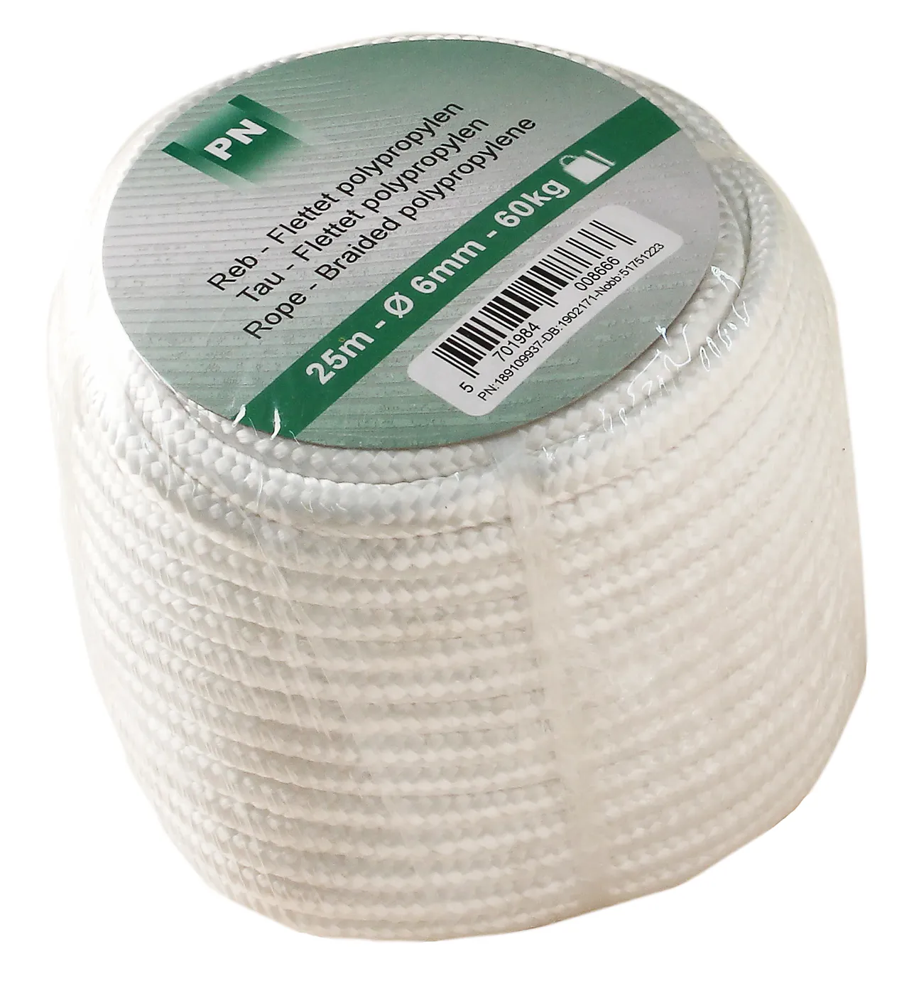 • Tau flettet ø 6 mm x 25 m polypropylen