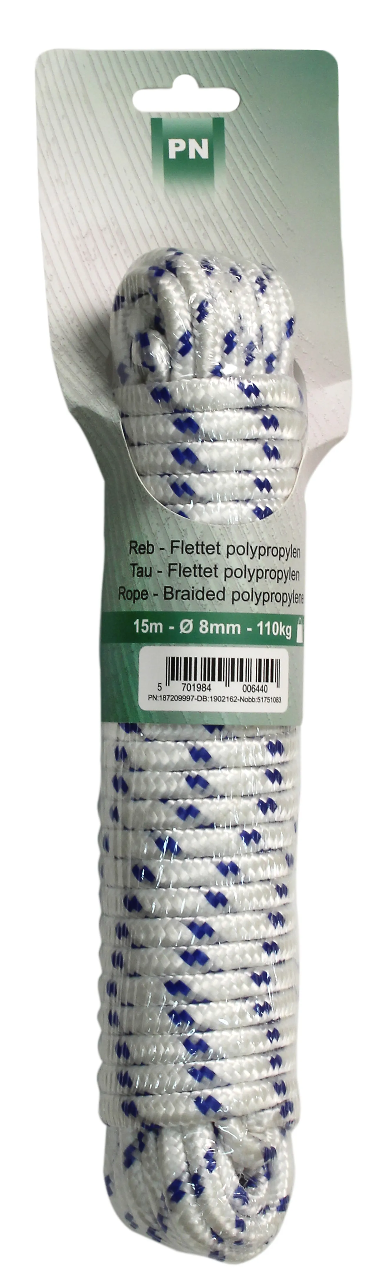 NOBB 51750996 - Artikkelnummer 101216179Tau flettet ø 8 mm x 15 m polypropylen