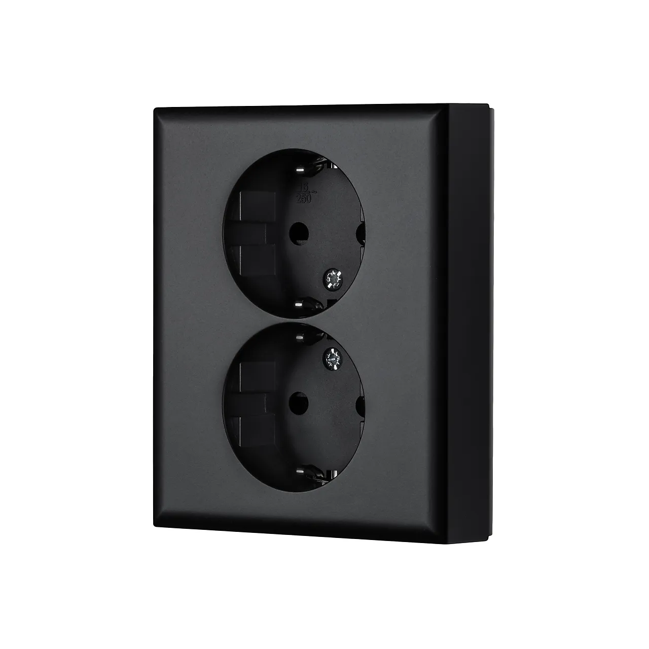 NOBB 60037617 - Artikkelnummer 101430327Stikkontakt dobbel m/jord lav innfelt sort