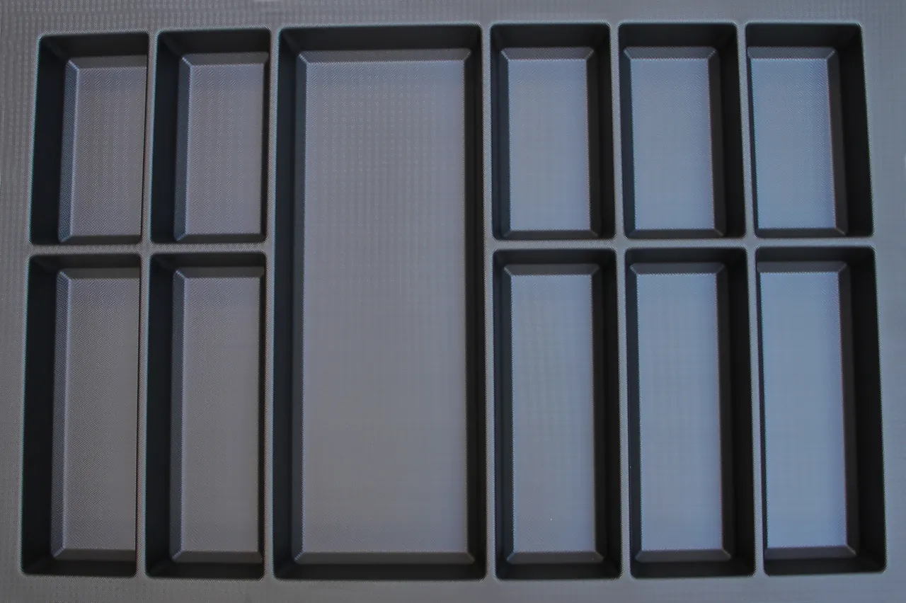 Bestikkinnlegg til tandembox-skuffer. Få system i kjøkkenskuffene med disse stilrene bestikkinnleggene fra Aubo. Innleggene er laget i en flott og unik overflate som er enkel å rengjøre. Velg mellom forskjellige størrelser og ulike kombinasjoner av små og store rom.