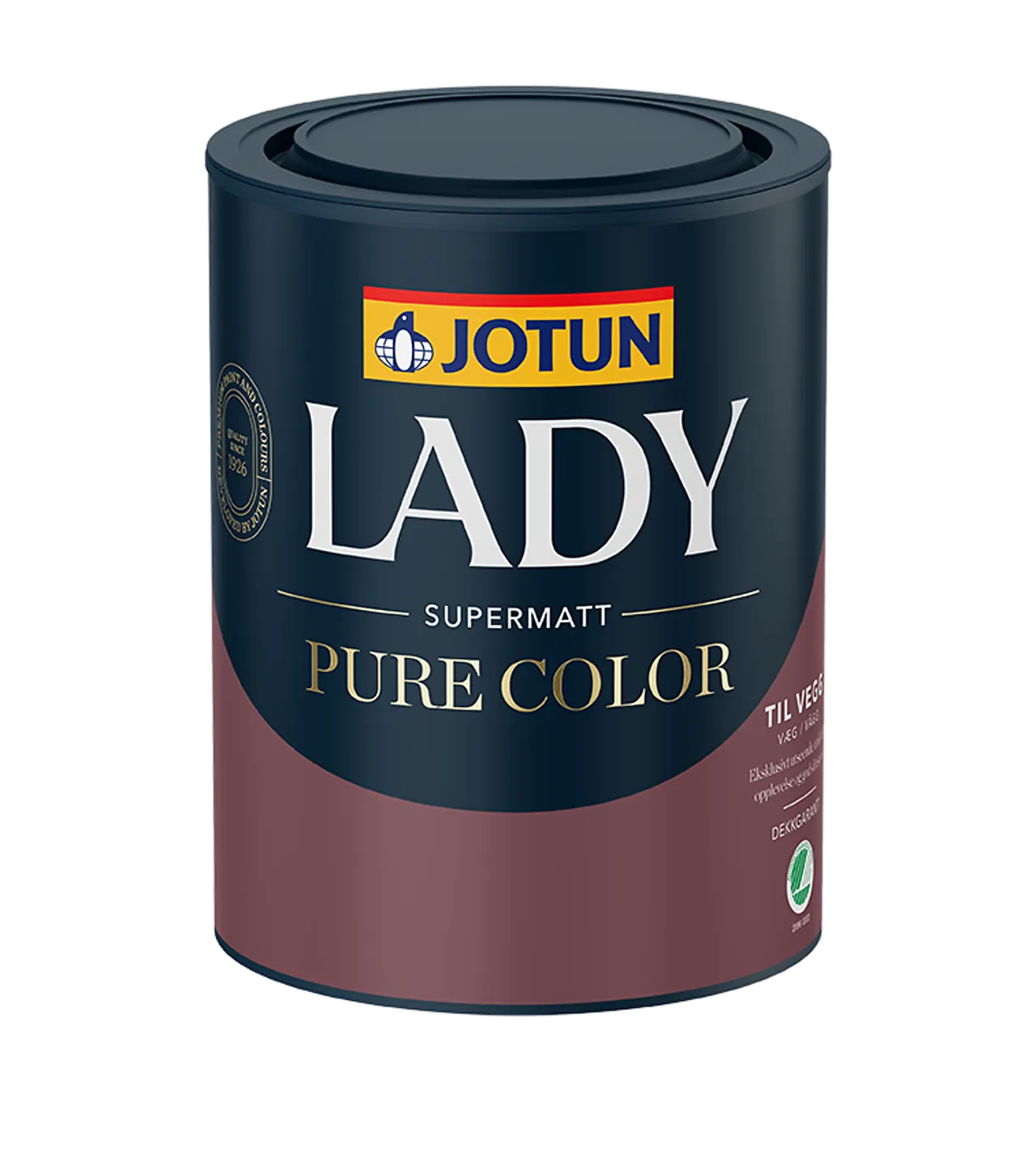 Nyhet! Jotuns vakreste maling noensinne har blitt enda vakrere, med supermatt eksklusivt utseende og unik fargeopplevelse. Malingen er slitesterk og har dekkgaranti. Unik fargegjengivelse gir et sobert og sanselig uttrykk. Med den nye supermatte finishen i LADY Pure Color, kommer hver fargenyanse til sin rett og du vil få den perfekte fargen du var ute etter.