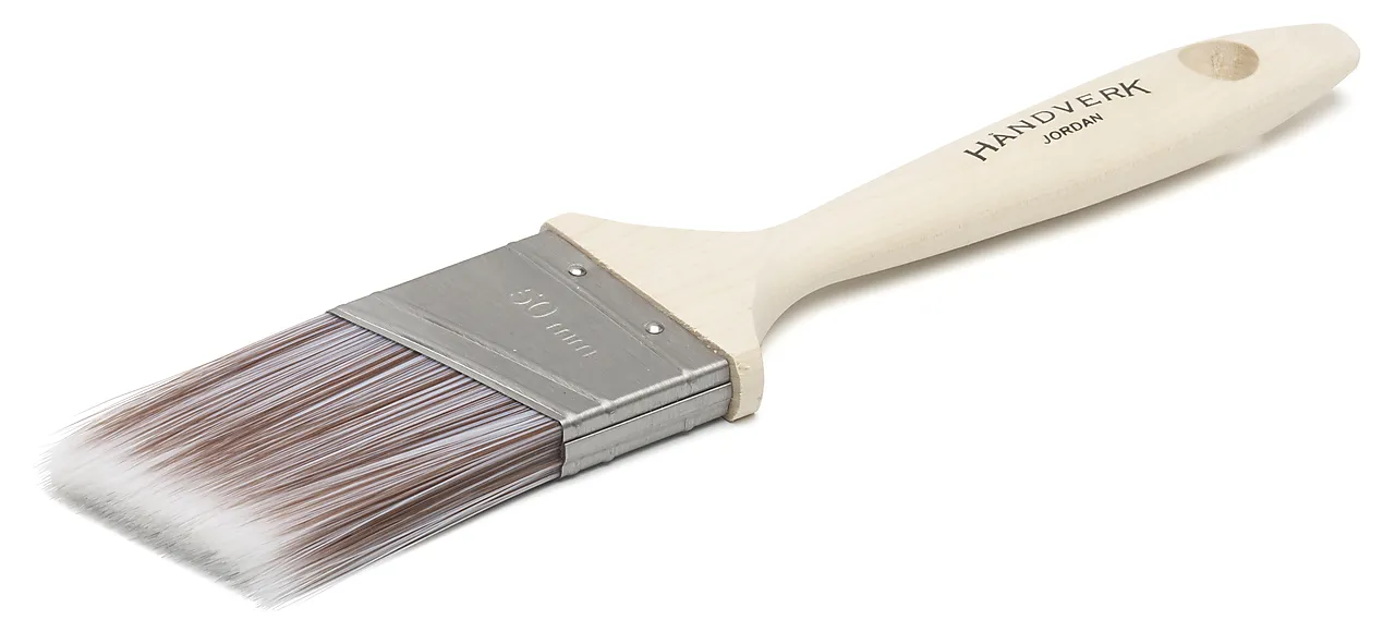 Pensel fra Jordan Håndverk. Skrå pensel for maling på panel, vegg, dør, møbler, lister, karm mm. Egnet for de fleste typer maling. Jordan håndverkserien er spesielt utviklet for profesjonelle malere.