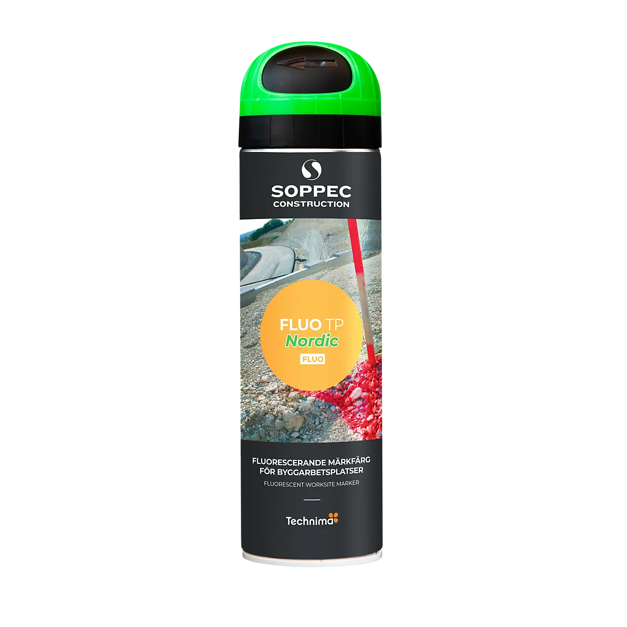 Merkespray i fluoriserende farger med meget god vedheft, også på fuktige underlag til konstruksjon. Bruk sprayen på betong, asfalt, gress, grus, tre etc. Sprayen varer i 9-12 måneder. Den er værbestandig, har god dekningsevne, og høy synlighet på avstand. Tørketid er ca 5 minutter. Brukstemperatur -15 til 50 °C. Leveres i 500 ml bokser.