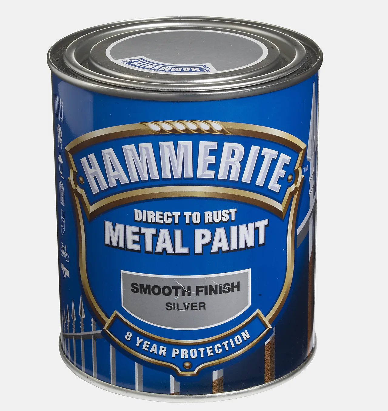 Hammerite er det originale produktet som i sin tid ble spesielt utviklet for bruk på metall. Enten det er nytt metall som skal beskyttes, eller gammelt met all med rustangrep som trenger en oppfriskning. Hammerite stopper eksiterende rustangrep og beskytter mot nye. I tillegg gir produktet en utrolig hard og sl itesterk overflate som virkelig varer i mange år. Produktet fungerer som en pr imer, grunning og overflatefinish i en og samme operasjon. Finnes i Hammerslag , Glatt og Silkematt Finish..
