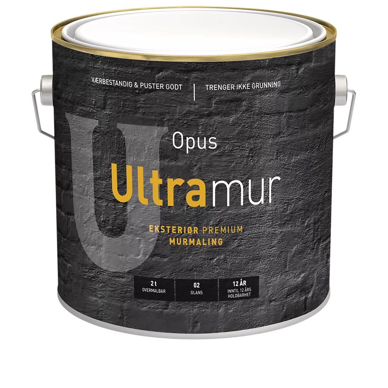 - Høykvalitets værbestandig murmaling for utvendig bruk med helmatt glans