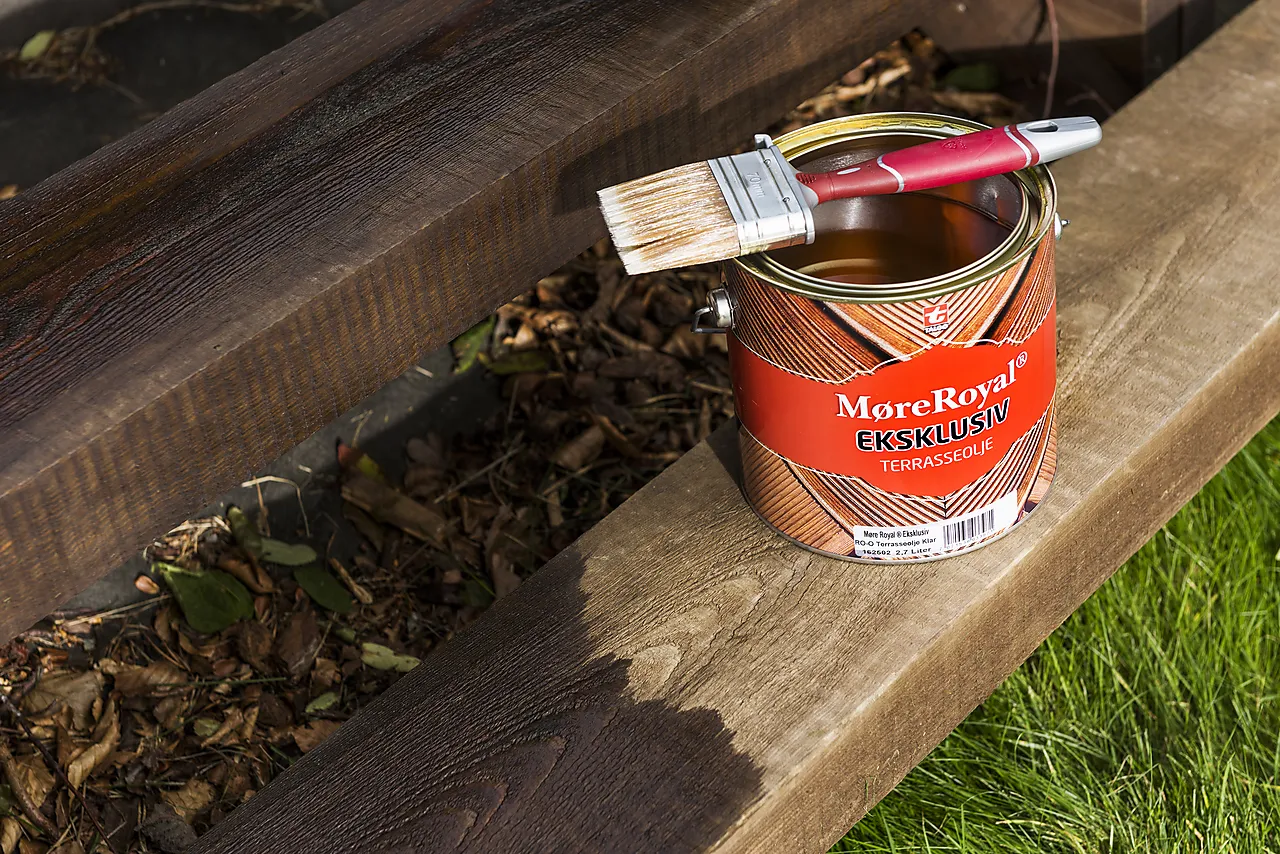 Eksklusiv terrasseolje til etterbehandling og vedlikehold av terrassebord, dekke, kledning, tretak, kappflater mm. Oljen leveres i samme farger som fargepaletten på materialene. Husk å olje alle kappflater for å forhindre fuktinntrengning i treet.