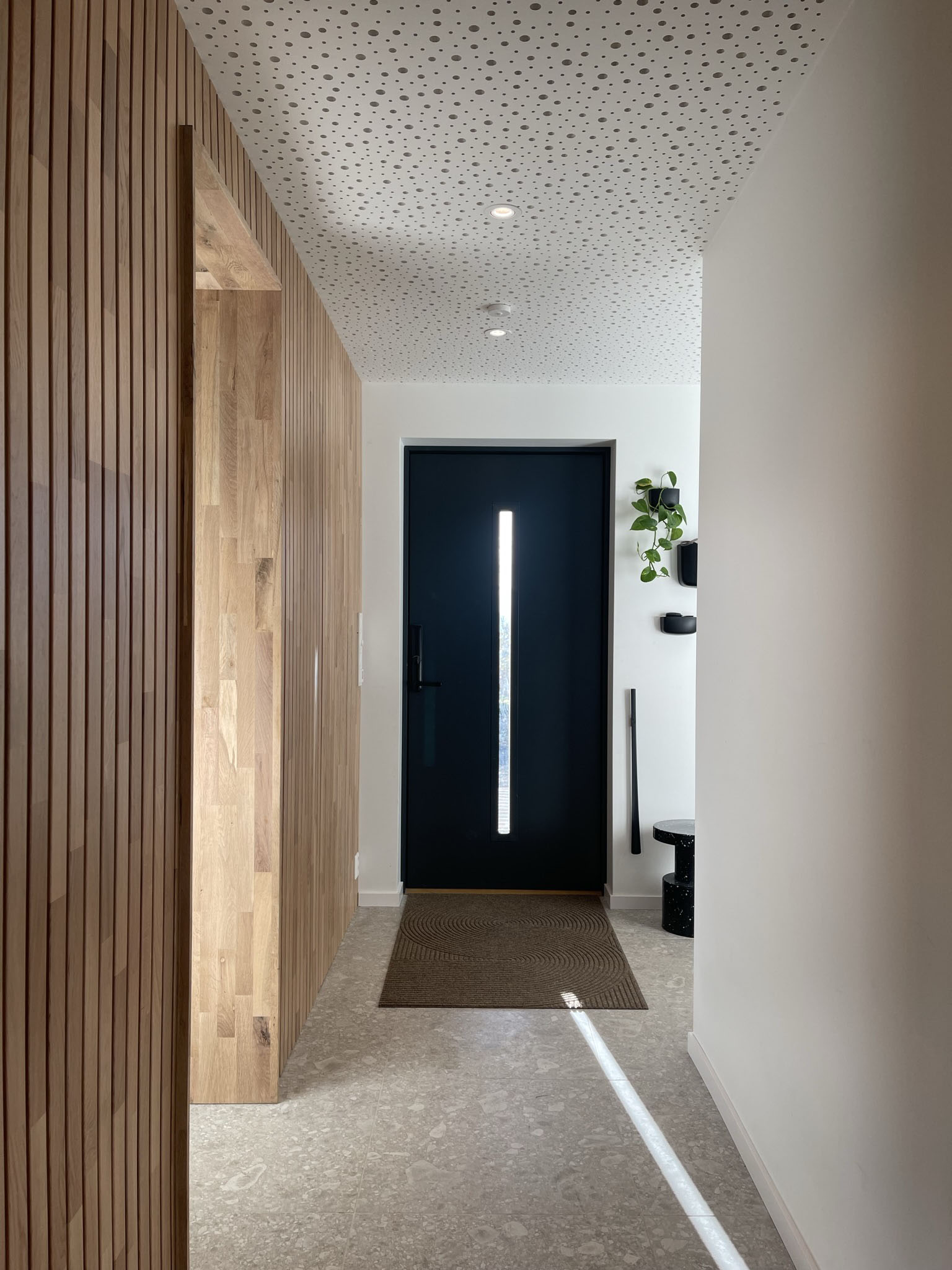 Dørterskel er et viktig moment når det kommer til å forhindre fukt. For å unngå fuktskader, er det viktig å unngå at regn og vann kommer inn i terkselen. Derfor er tersklene fra Harmonie laget i 25 mm eik med slitekant i aliminum. Karmen er svært bestandig og godkjent som livsløpsstandard. Med et frest spor under dørbladet, er terskelen inntrukket for at vann som er kommet inn, skal renne av og bort fra dør og terksel. På den måten vil ditt valg av en Harmonie ytterdør sikre deg mot uønsket fukt og være med å gi bedre inneklima!
