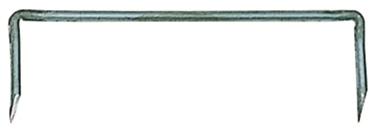 Bindhake i ubehandlet stål Ø8 mm. Til bruk for å binde sammen bygningselementer, holde tømmerstokker på plass, samt i lafting.