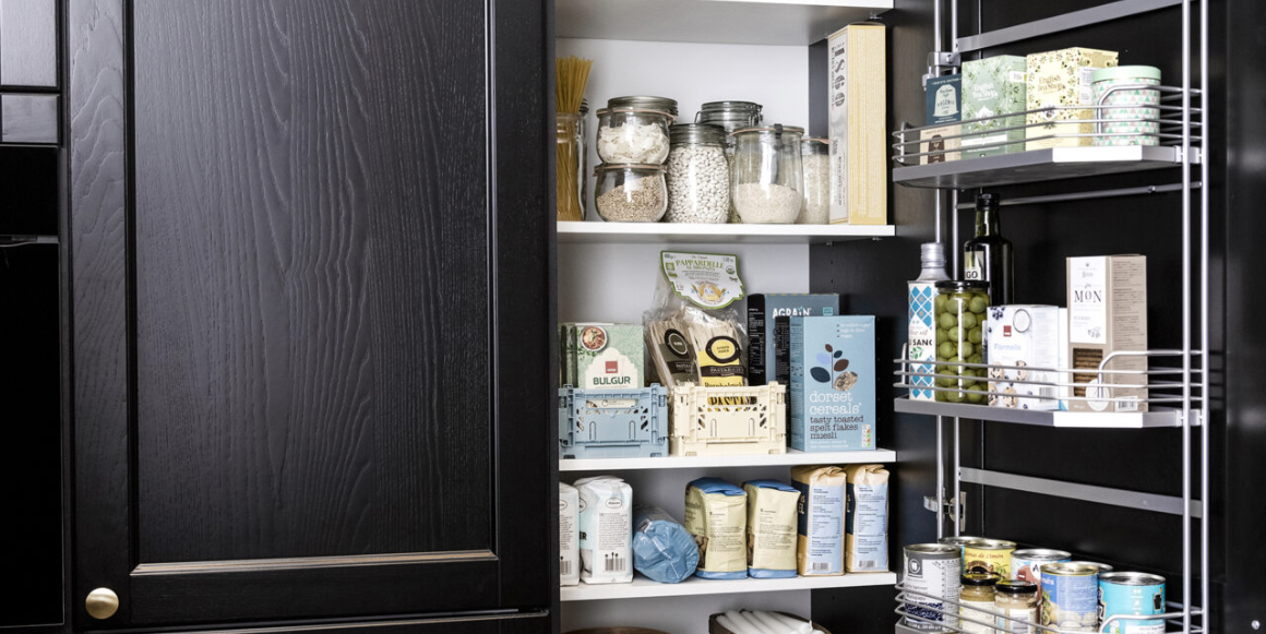 Et dypt kjøkkenskap har plass til mye, men er sjelden praktisk når det du skal ha tak i er plassert helt innerst. Velger du skuffer i stedet, får du raskt og enkelt oversikt. Dype kjøkkenskuffer er konstruert for å tåle vekten av både servise og tunge kokekar. I prinsippet kan skuffer romme alt kjøkkeninventar. Et høyskap med uttrekkbar innredning er også en praktisk løsning som sørger for enkel tilgang til alle tørrvarer.